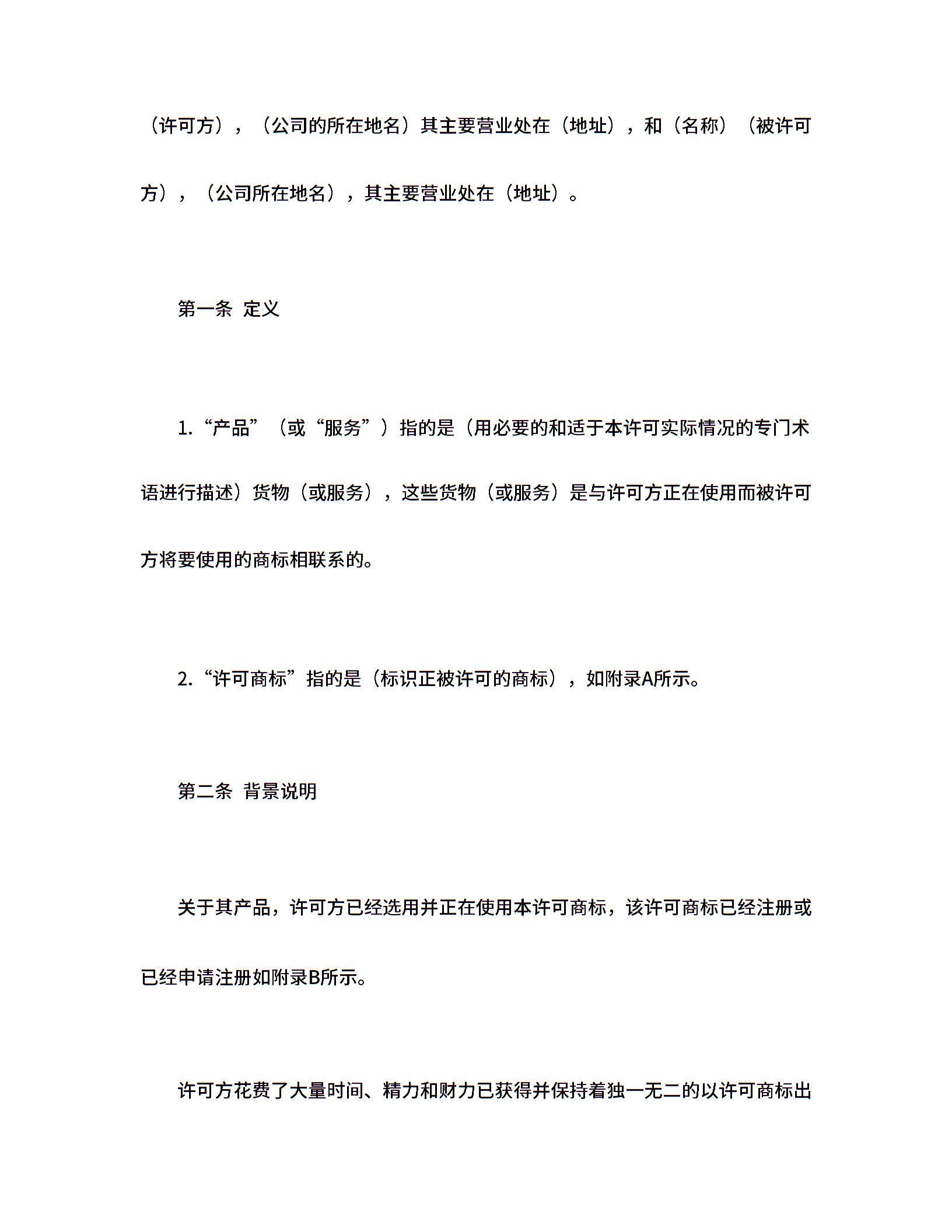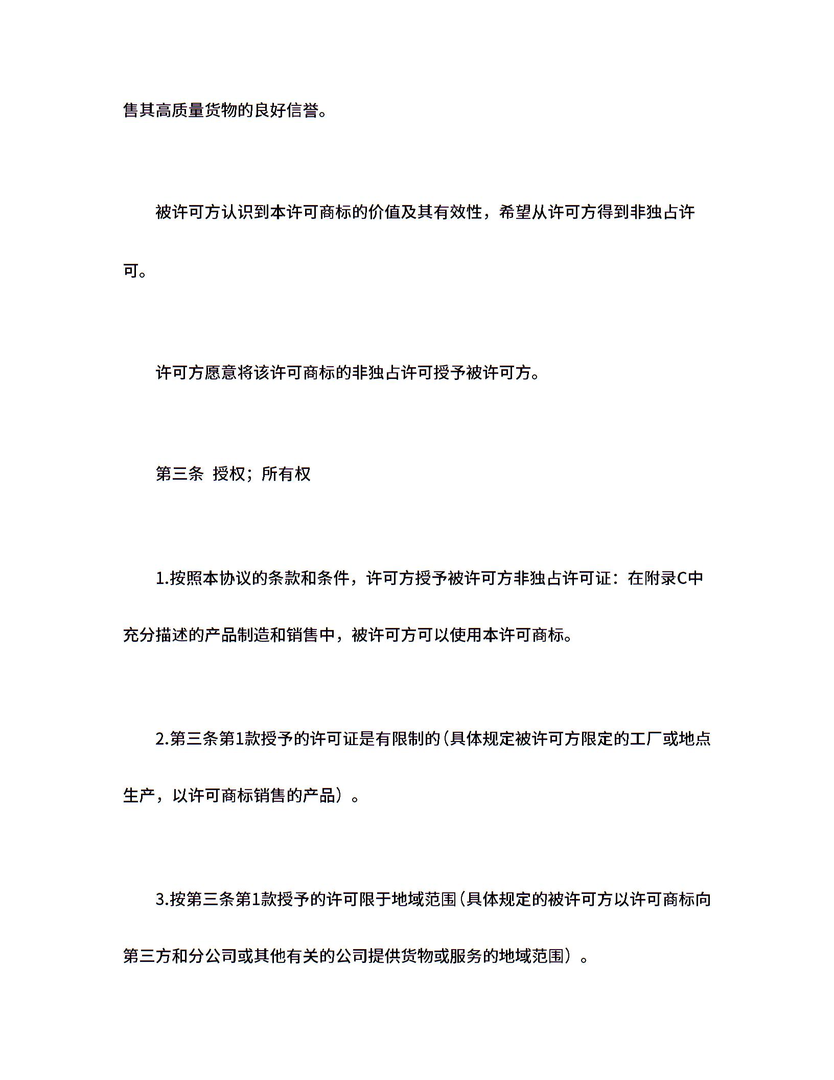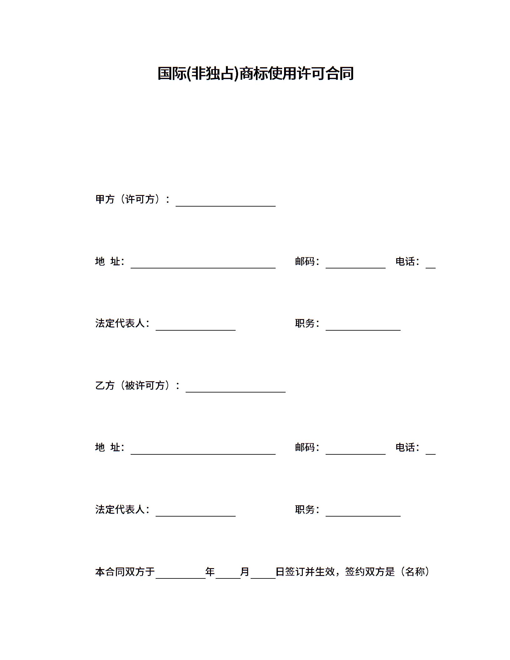 国际(非独占)商标使用许可合同
