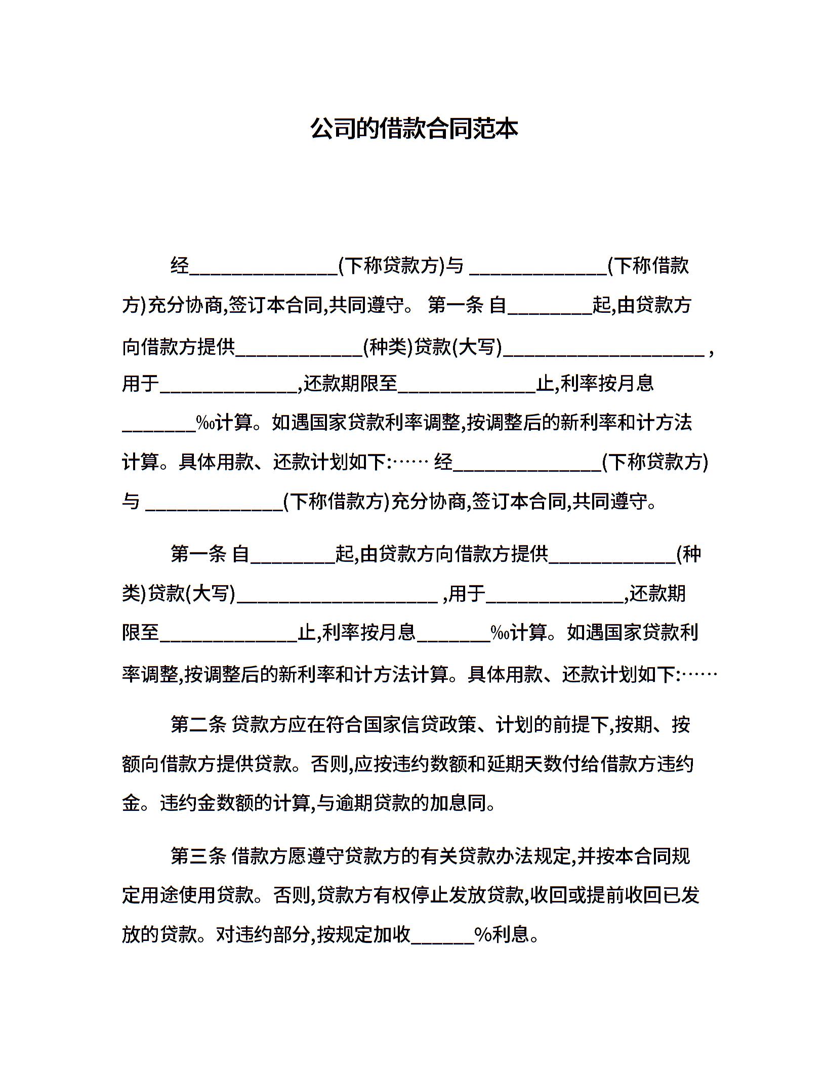 公司的借款合同范本