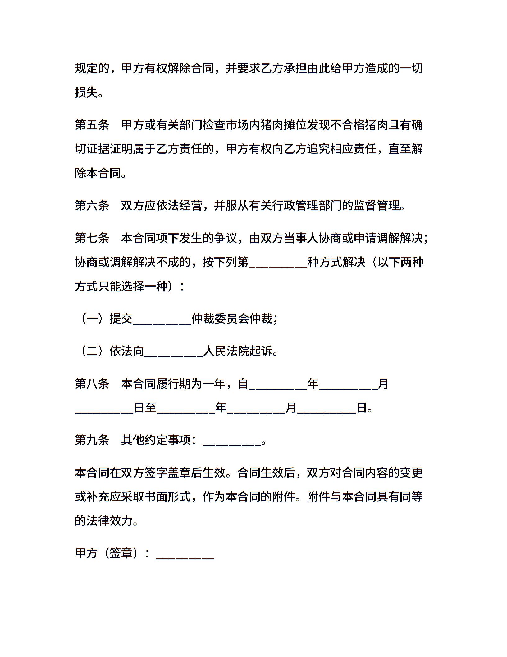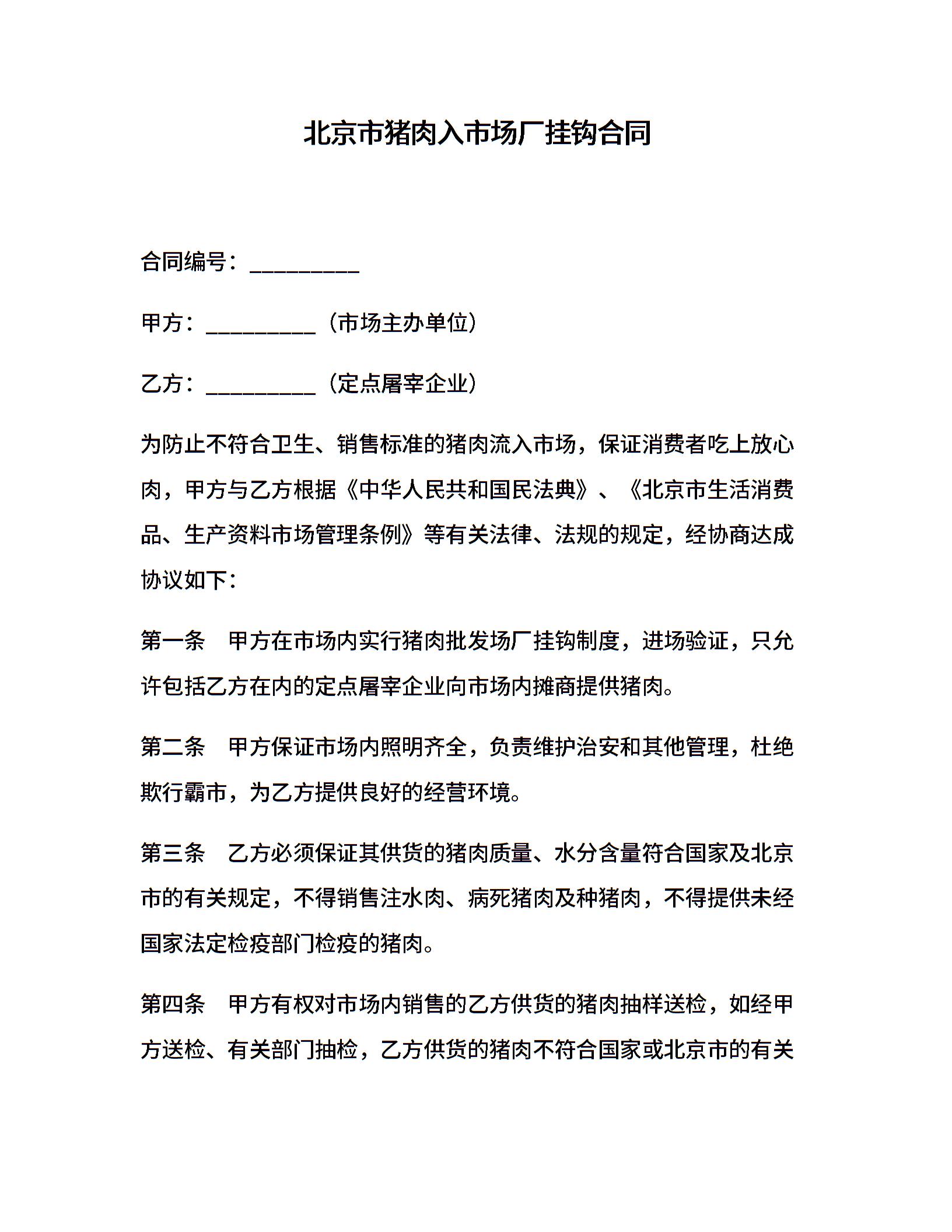 北京市猪肉入市场厂挂钩合同