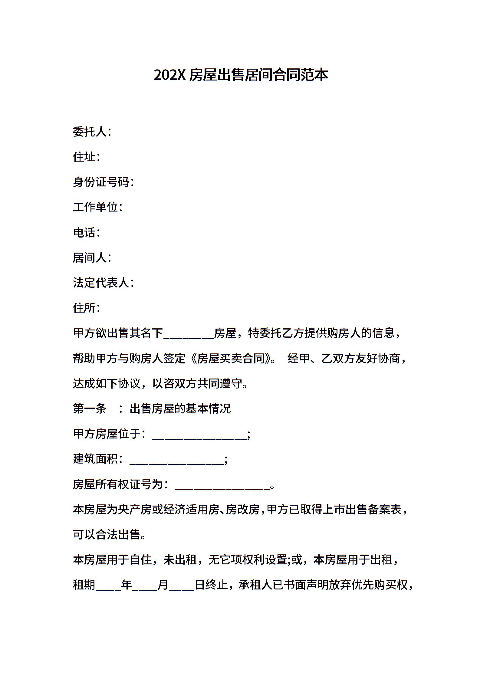 202X房屋出售居间合同范本