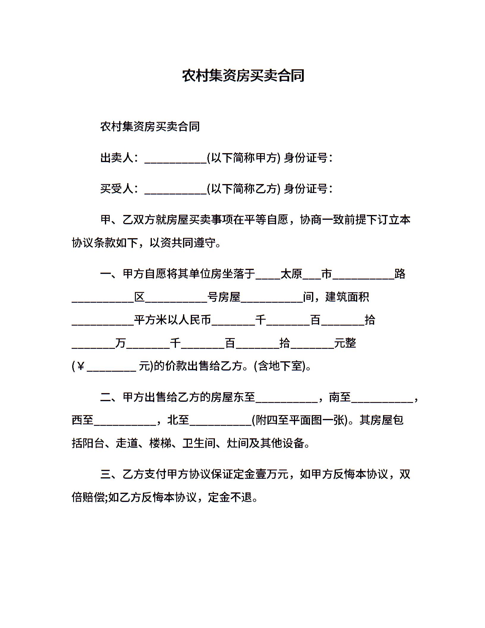 农村集资房买卖合同