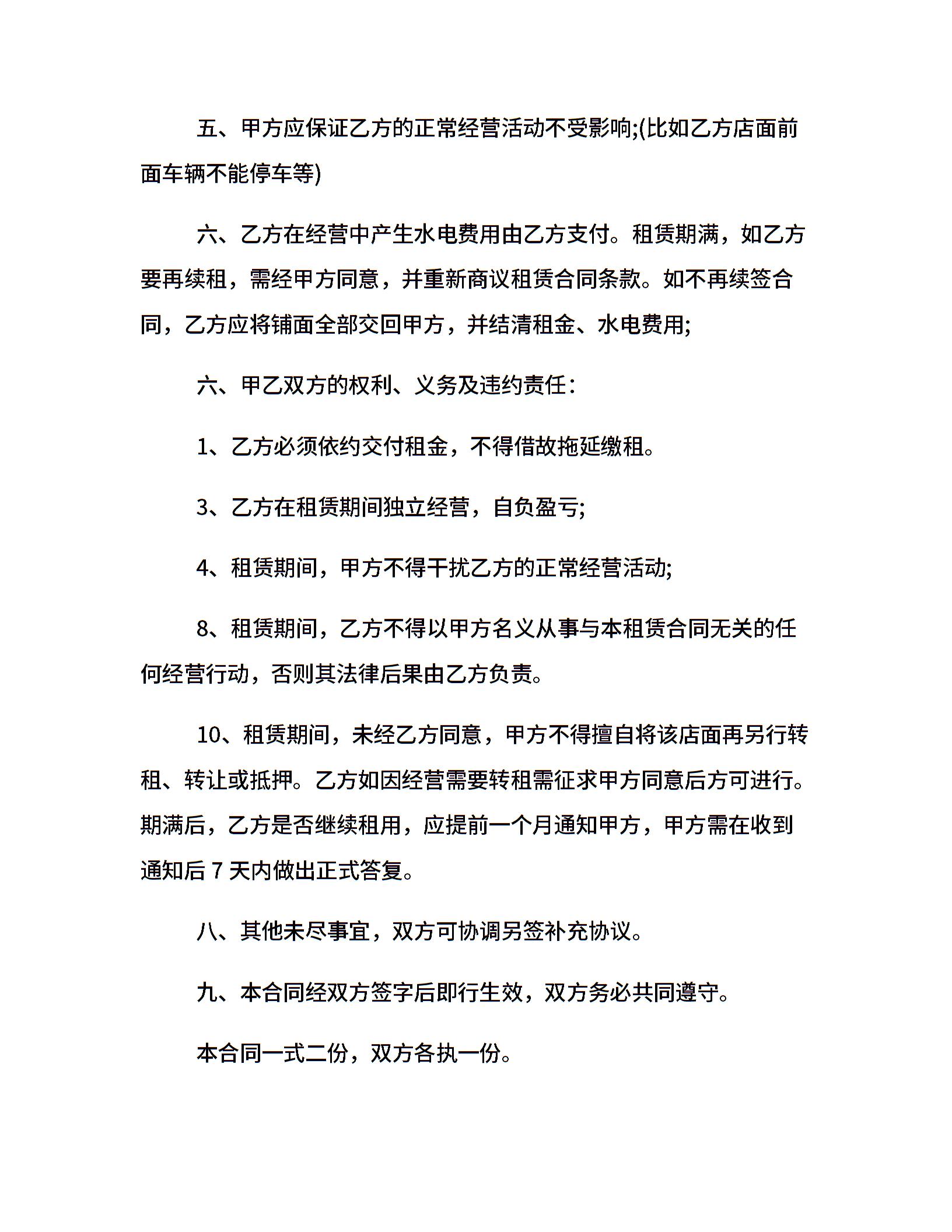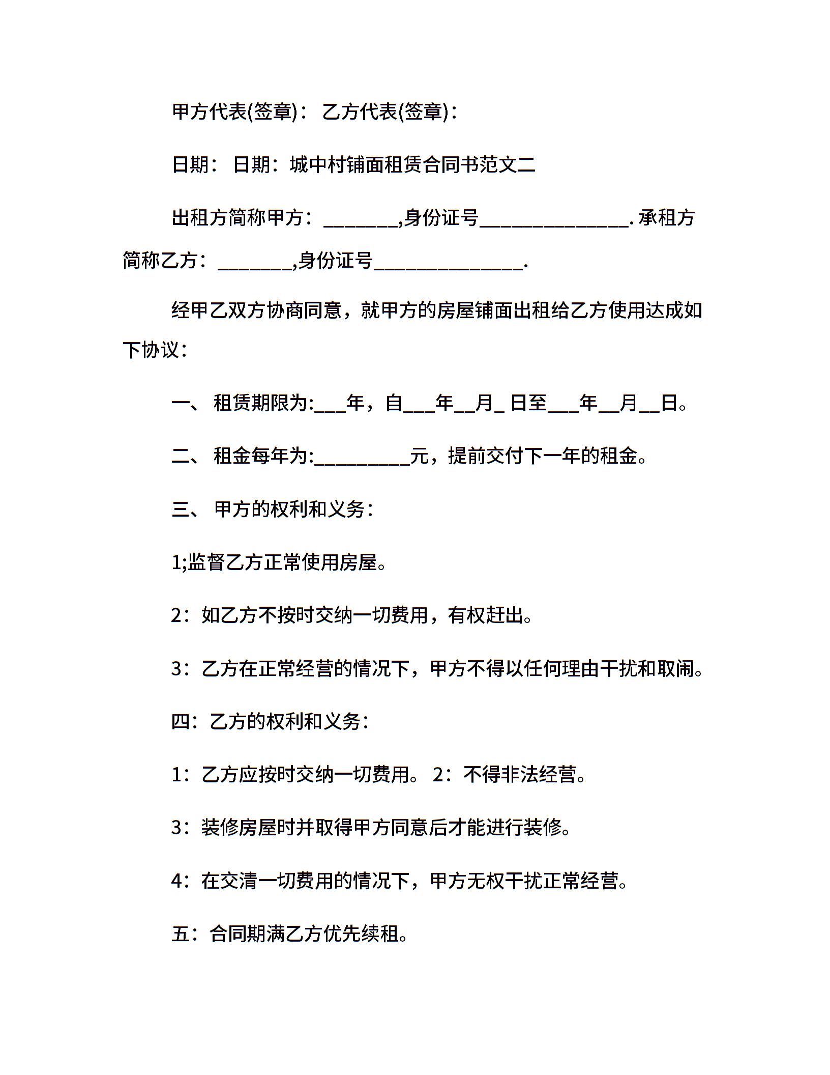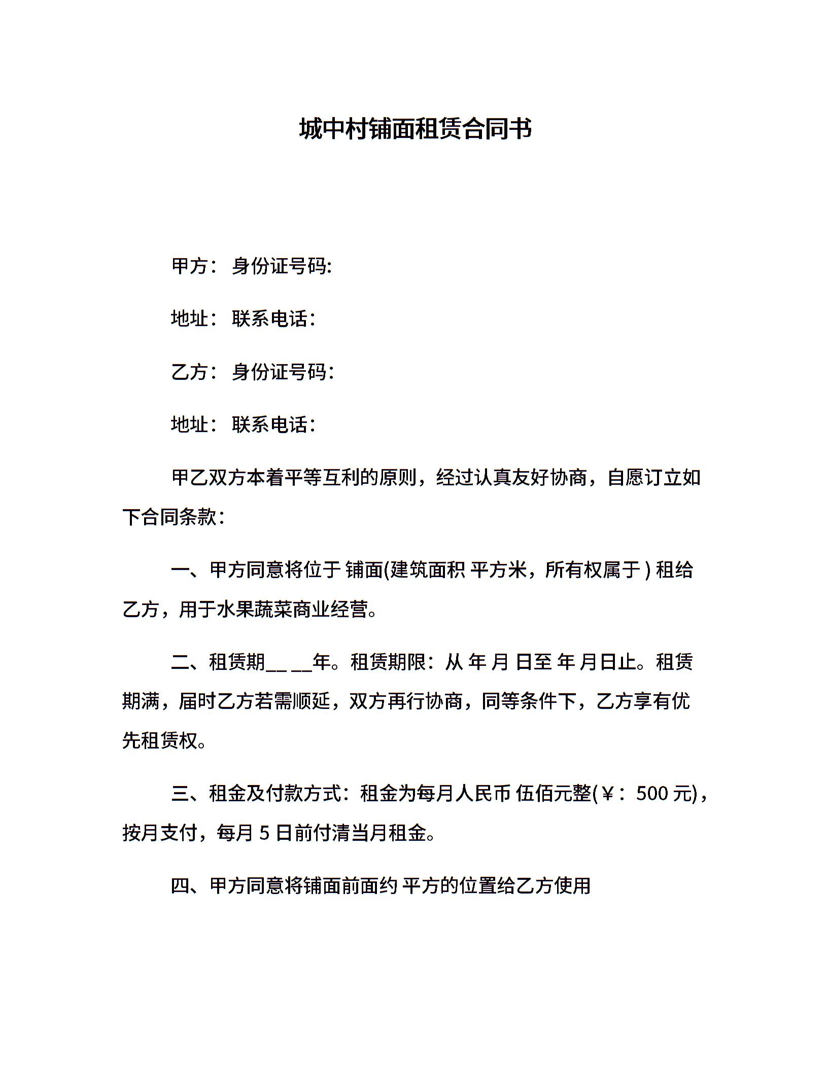 城中村铺面租赁合同书