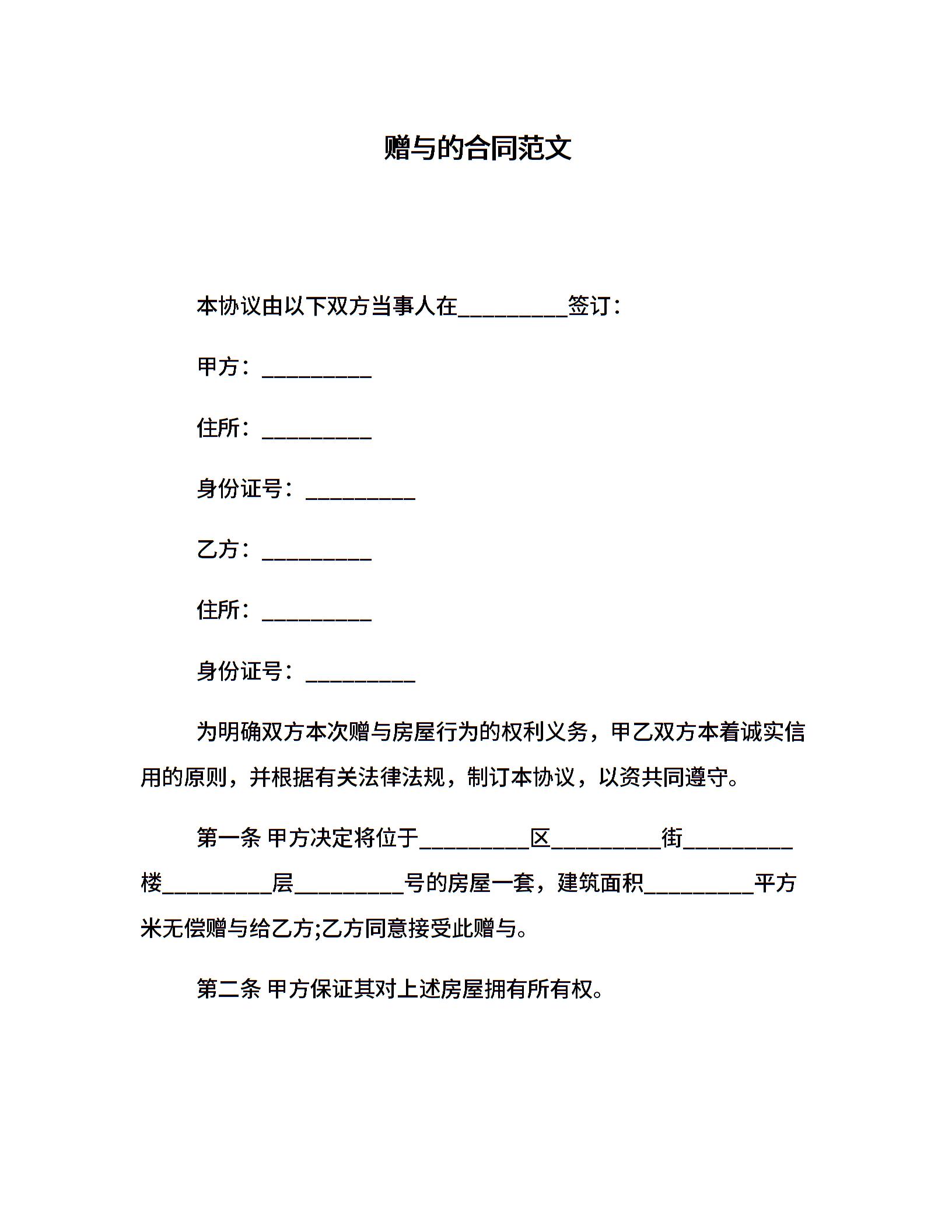 当前位置:量子办公 > 合同模板 > 赠与合同 >