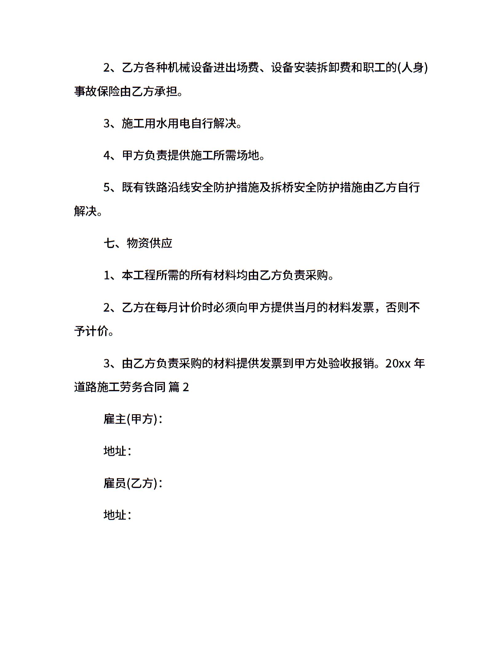 20xx年道路施工劳务合同