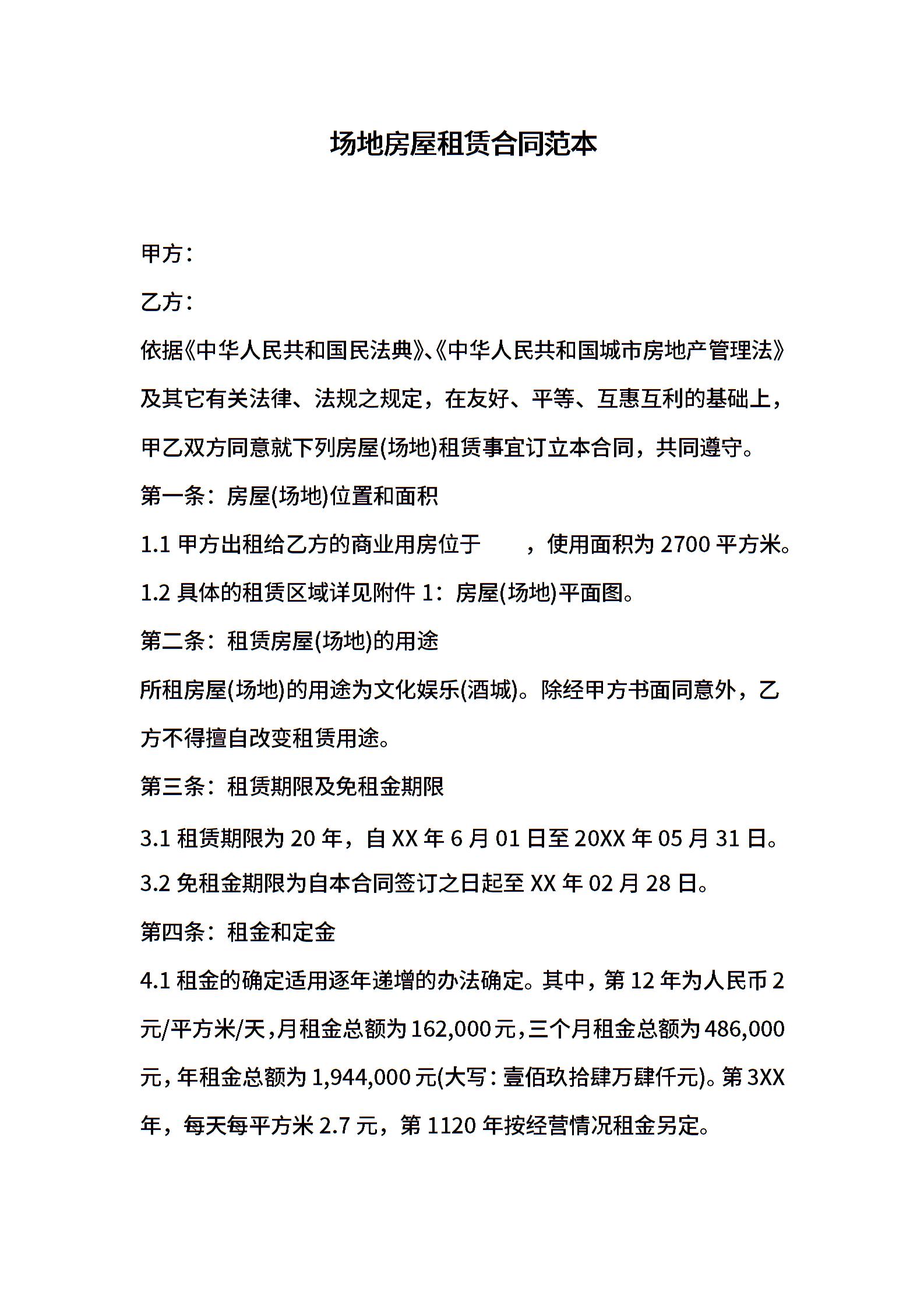 场地房屋租赁合同范本