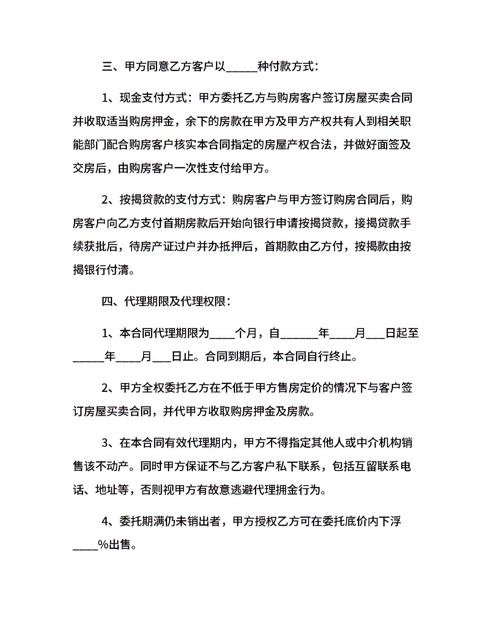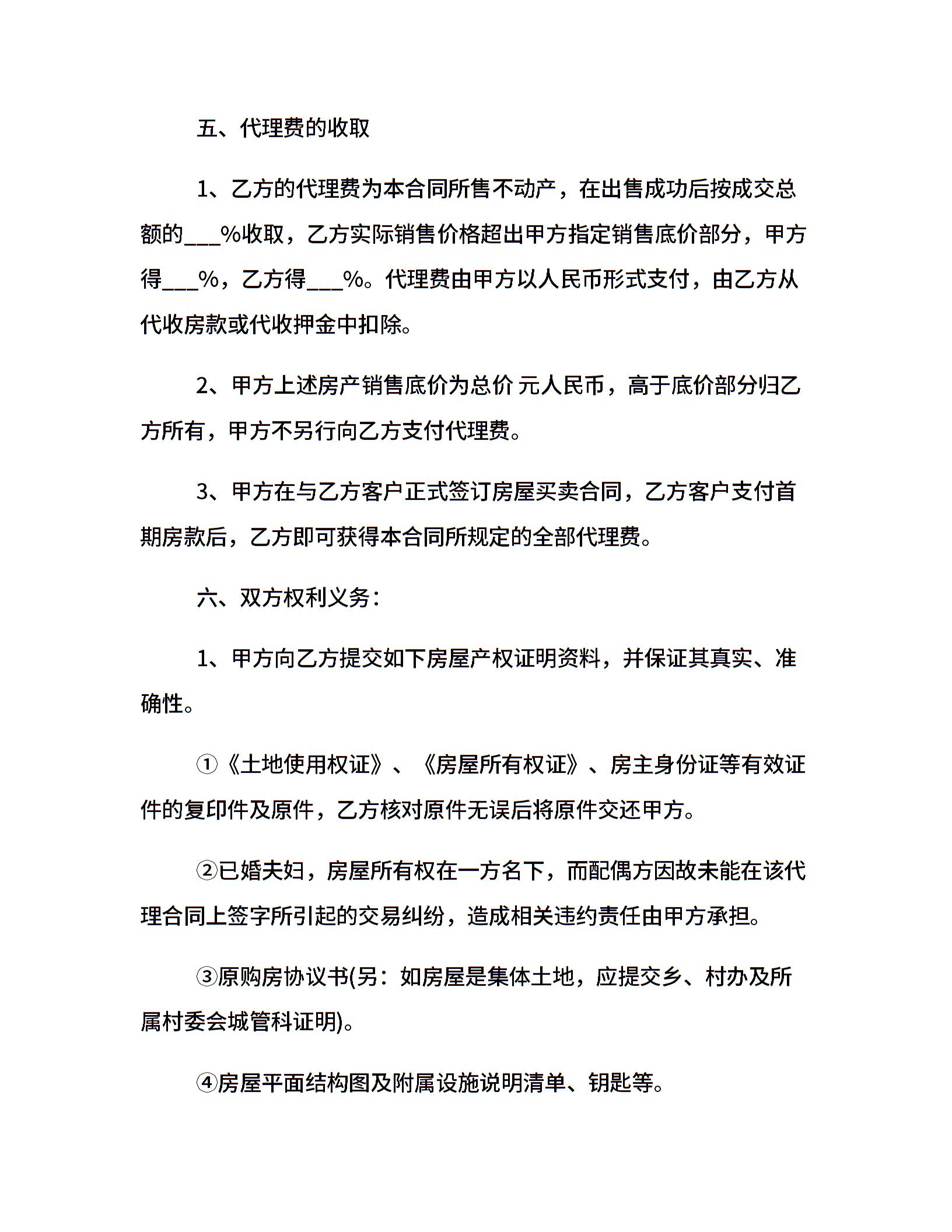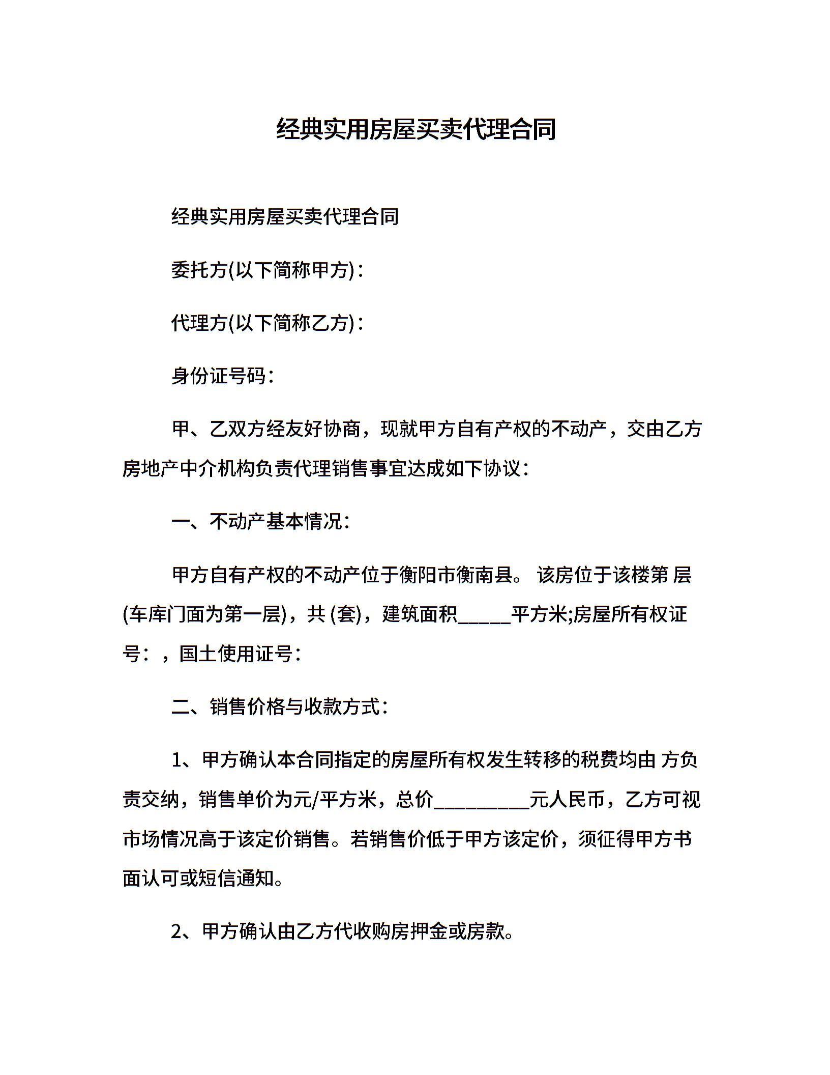 经典实用房屋买卖代理合同