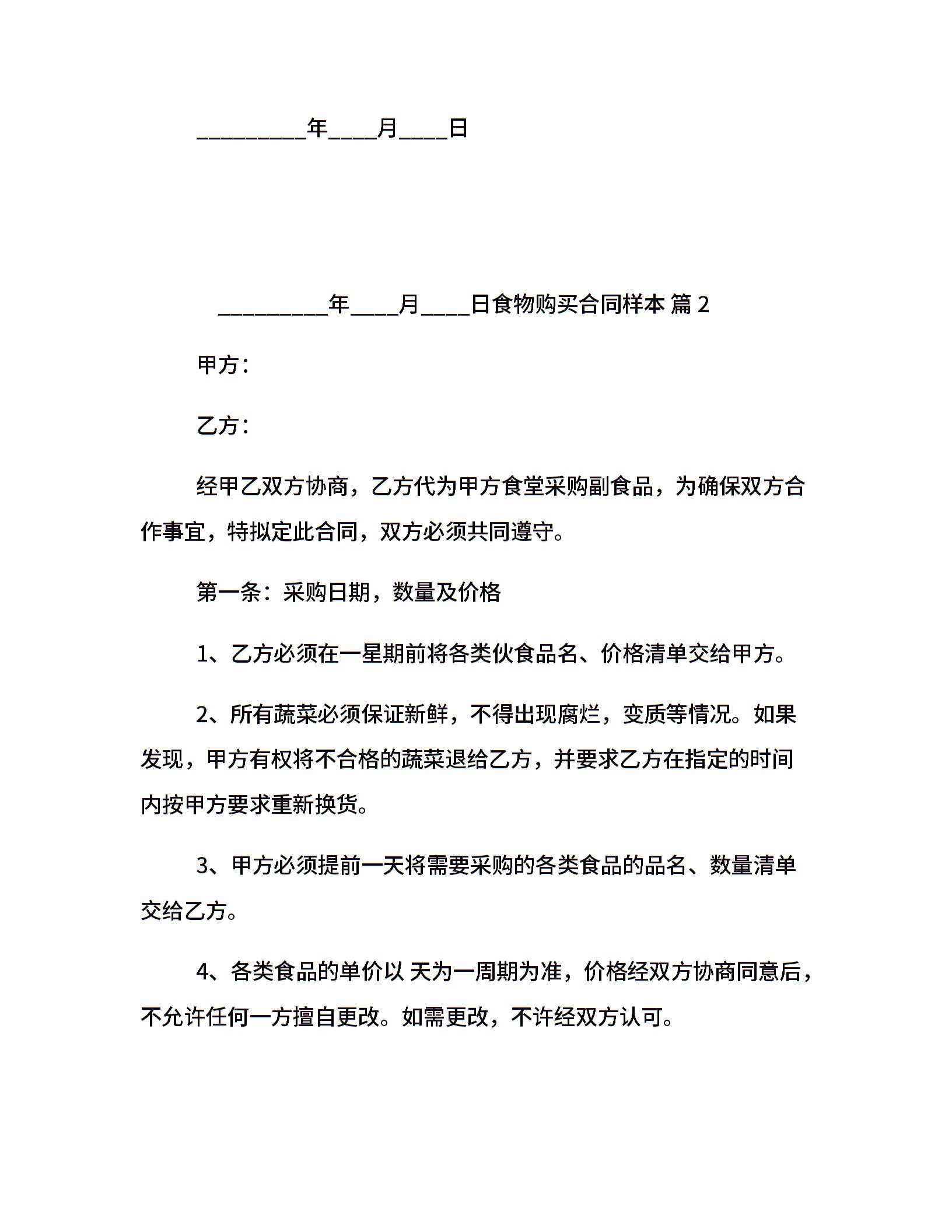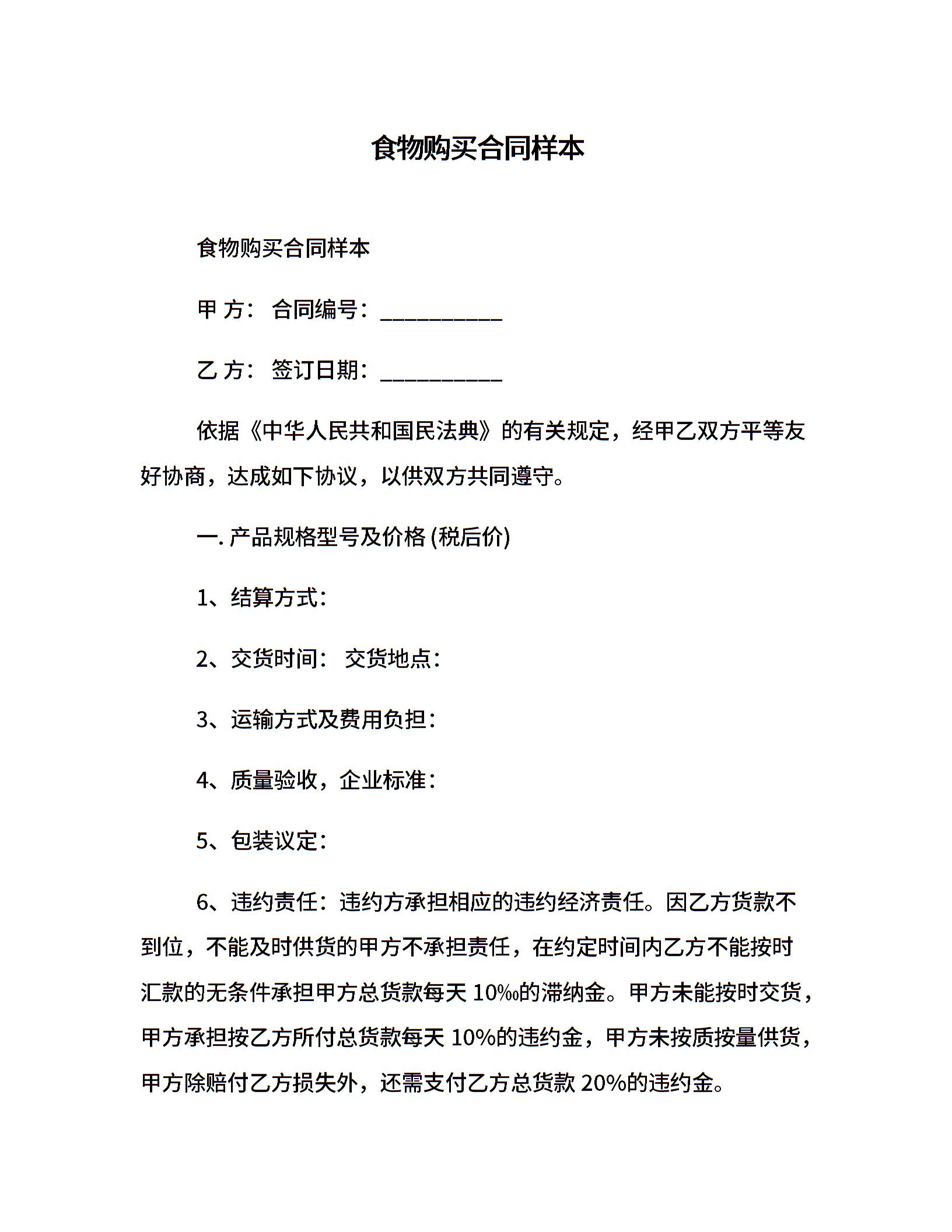 食物购买合同样本