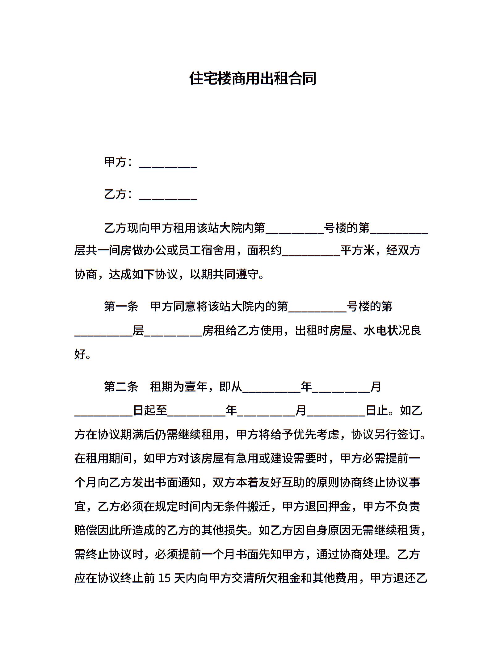 住宅楼商用出租合同