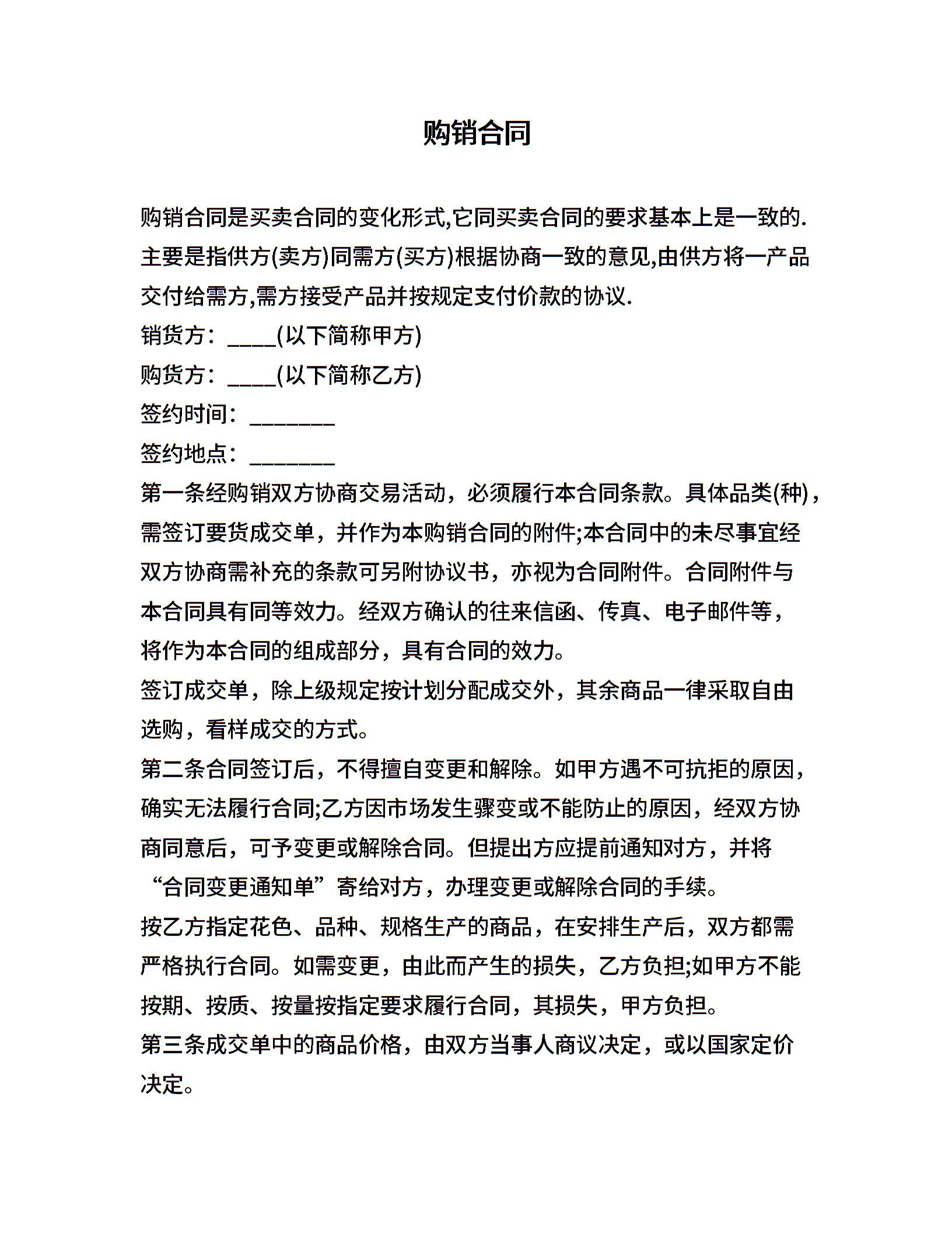 当前位置:量子办公 > 合同模板 > 购销合同 >