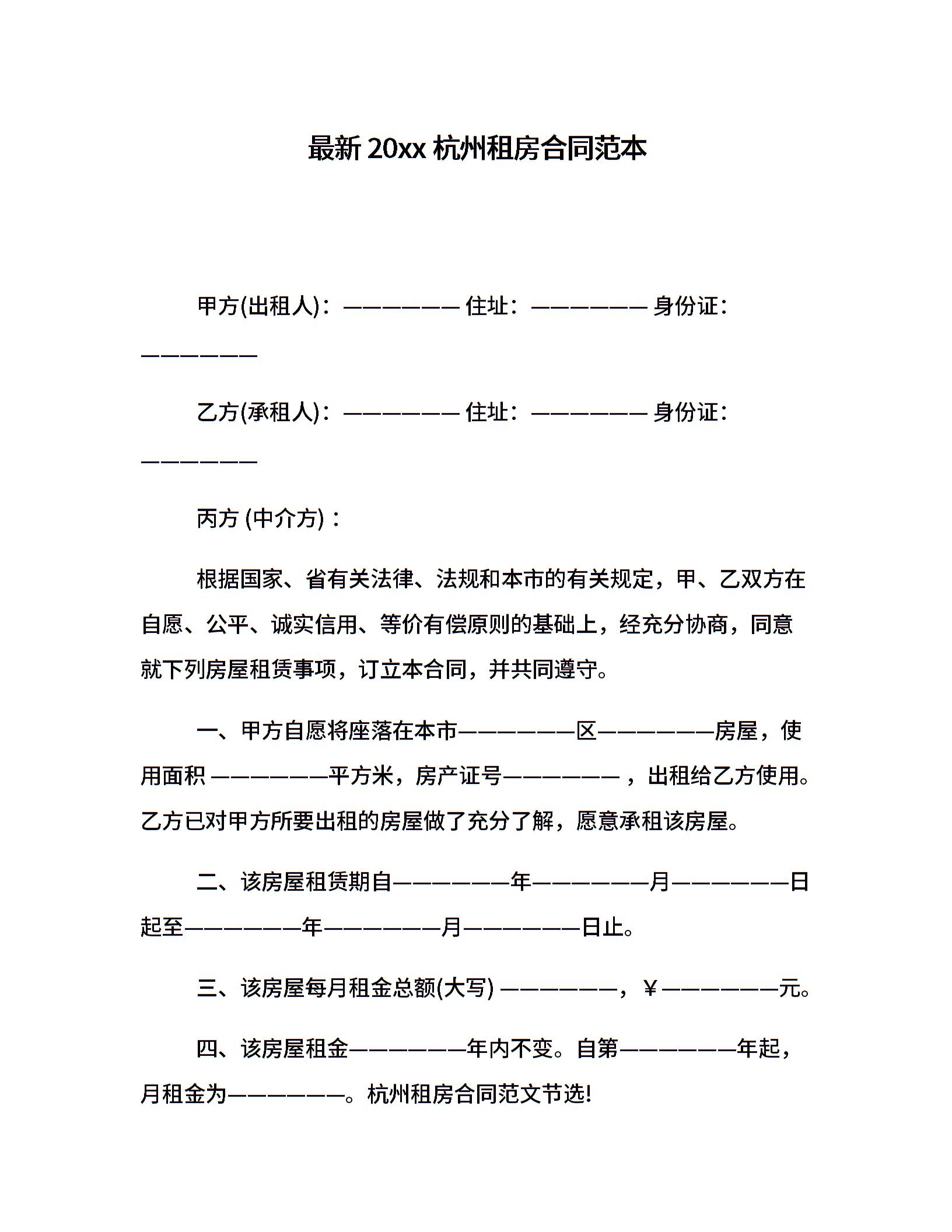 最新20xx杭州租房合同范本