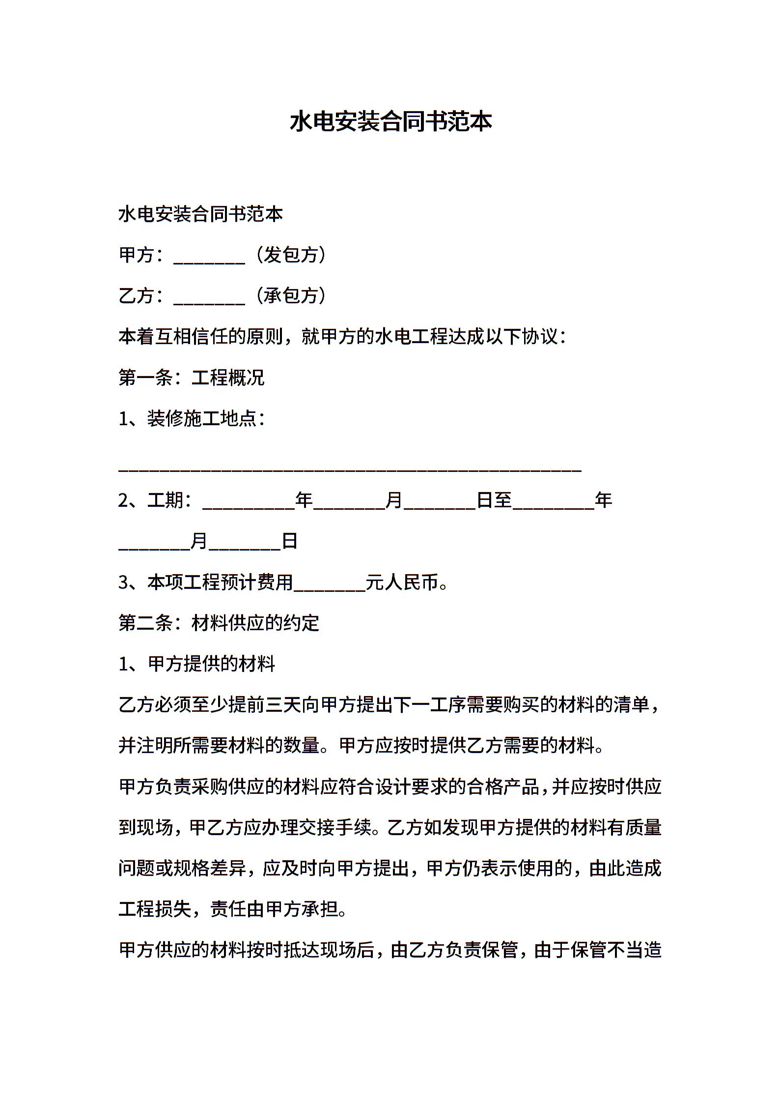 水电安装合同书范本