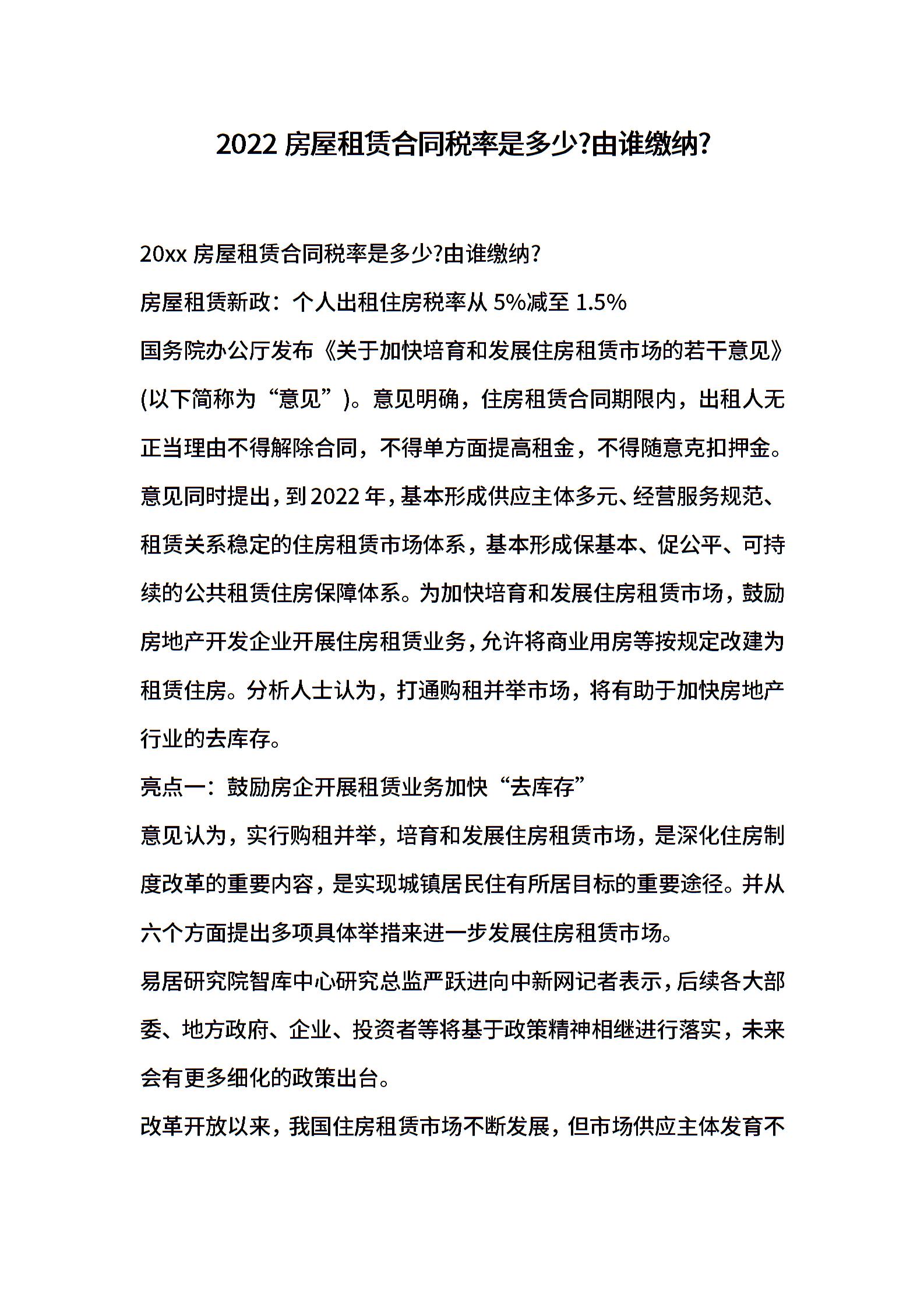 2022房屋租赁合同税率是多少-由谁缴纳- (2)