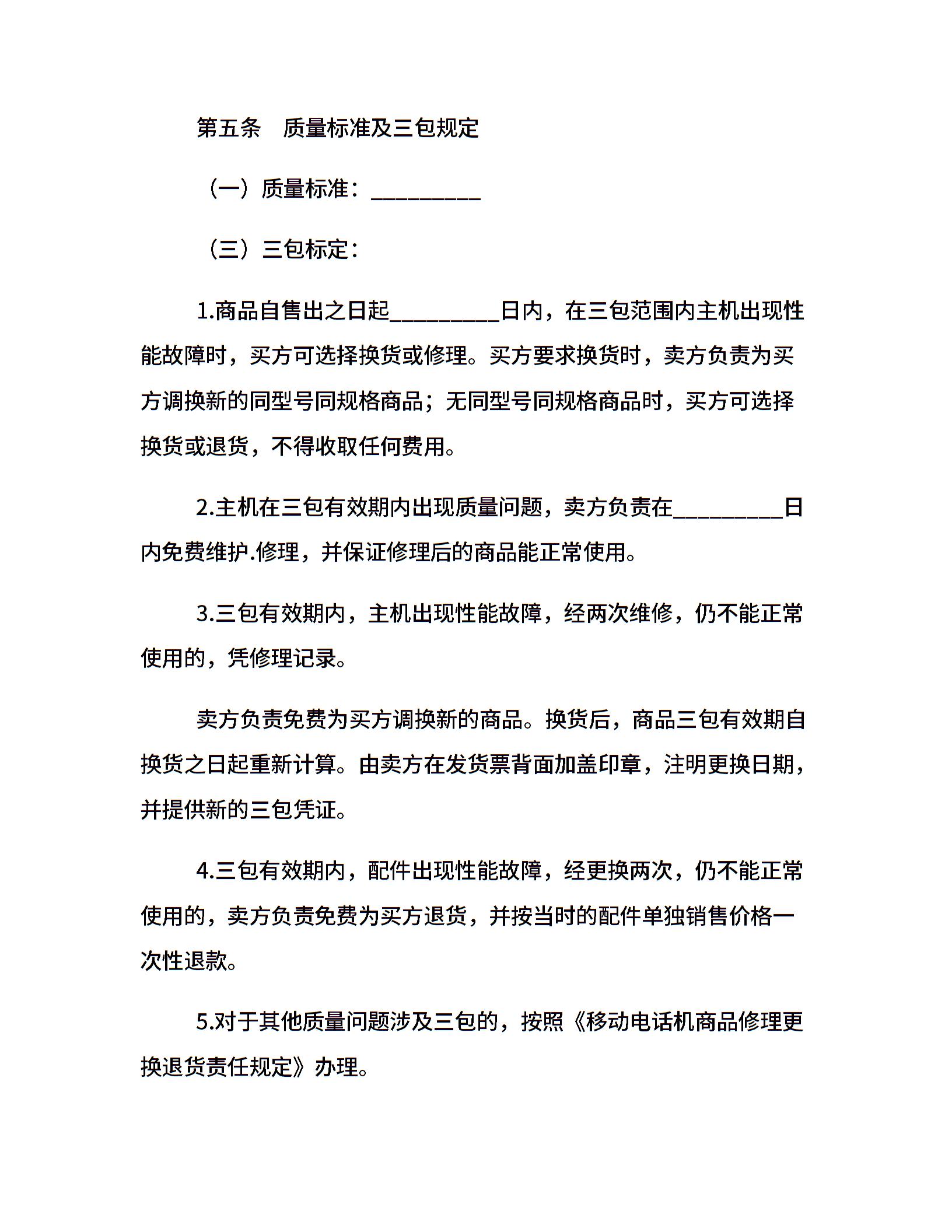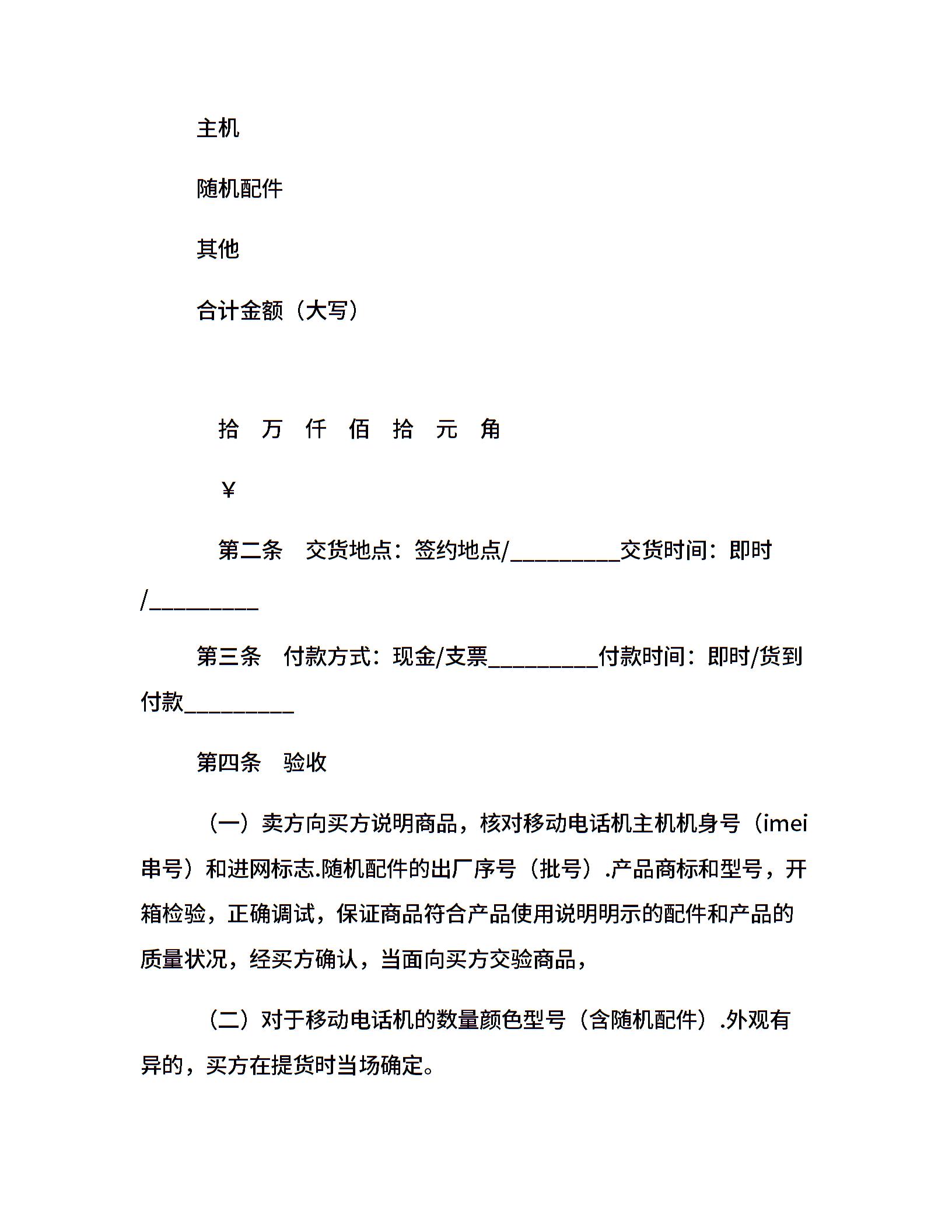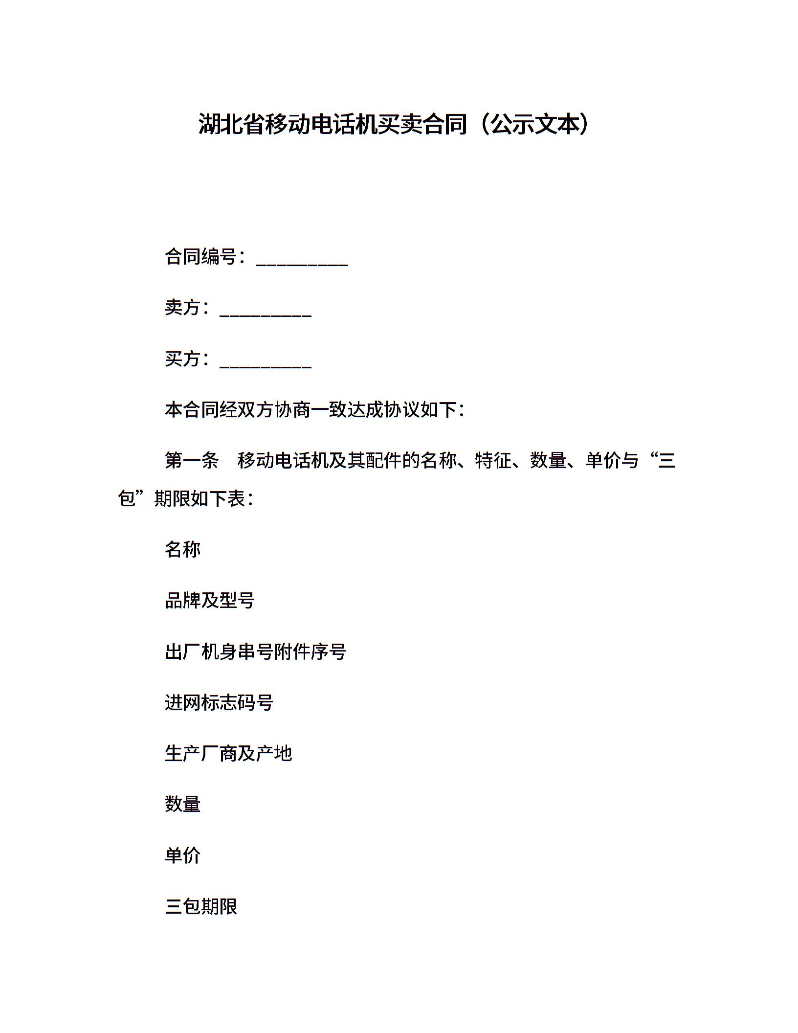 湖北省移动电话机买卖合同(公示文本)