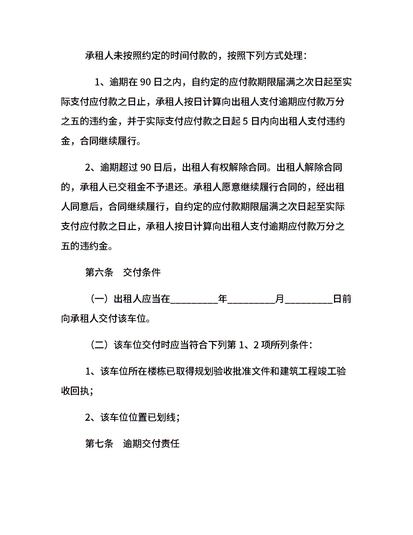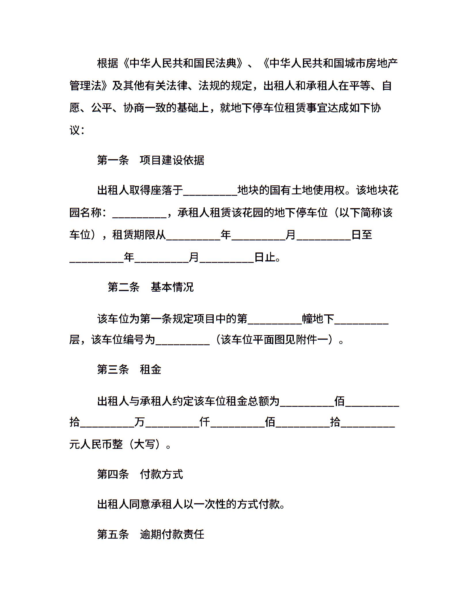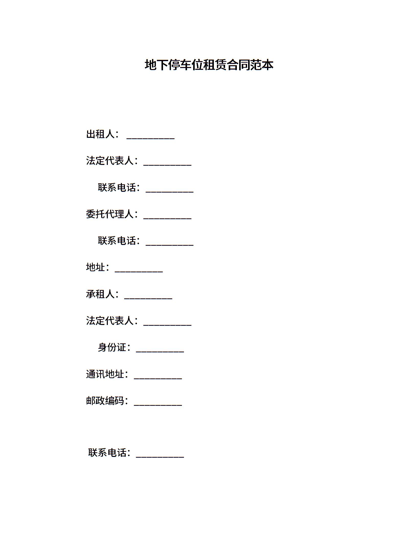 地下停车位租赁合同范本