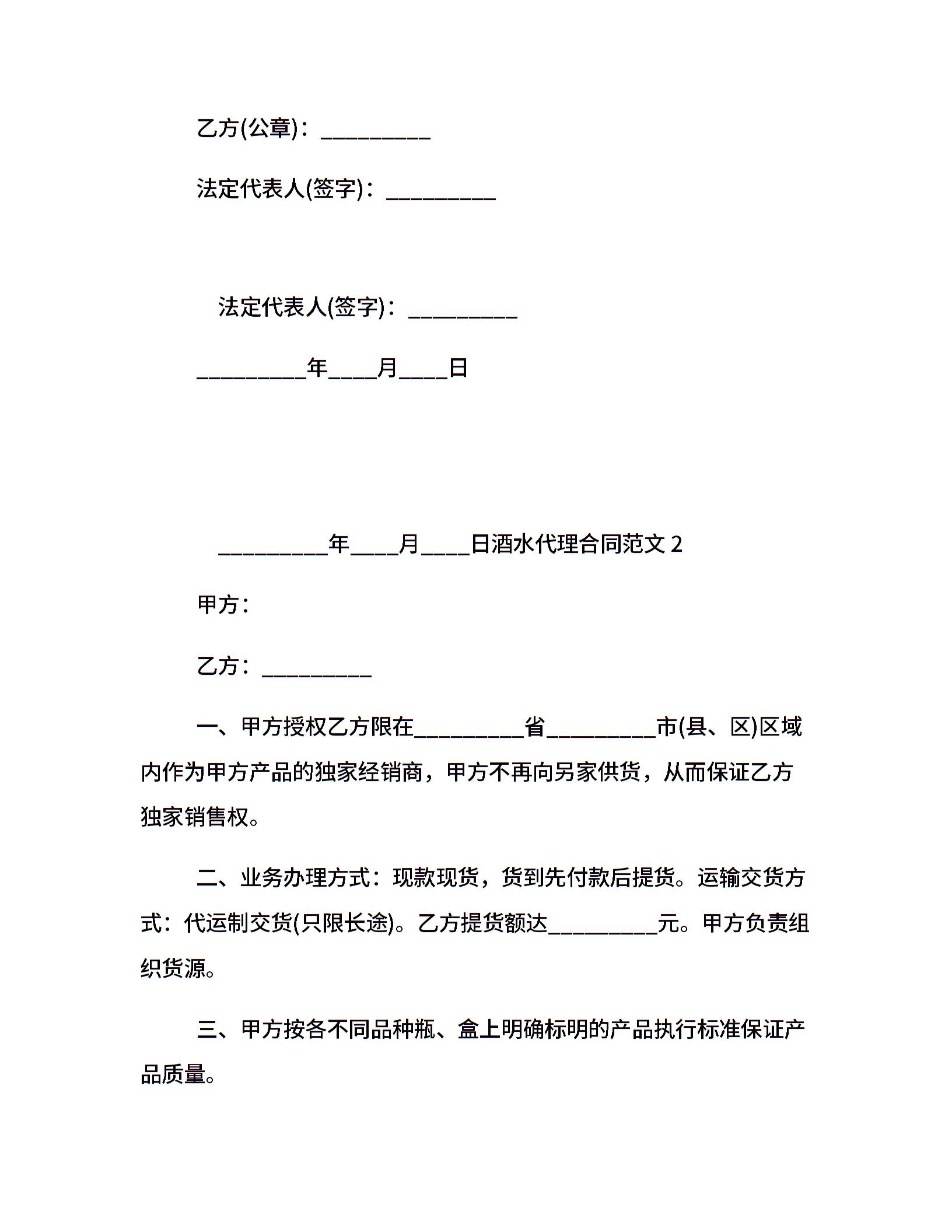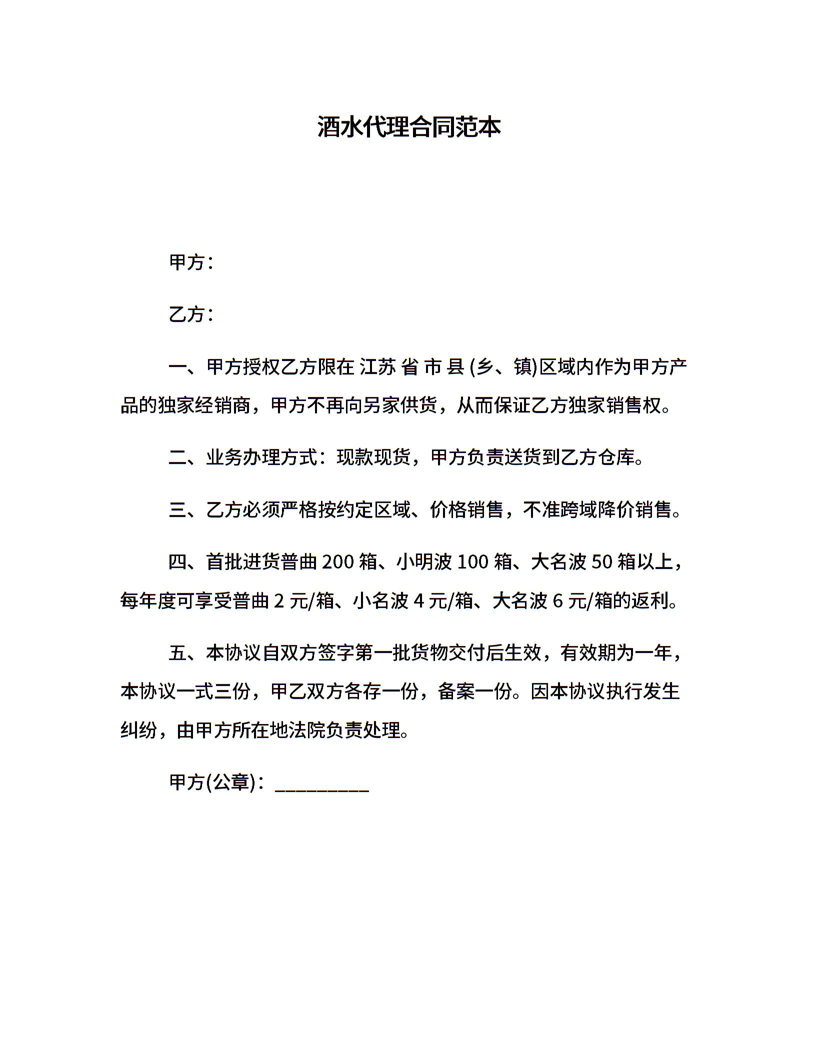 酒水代理合同范本