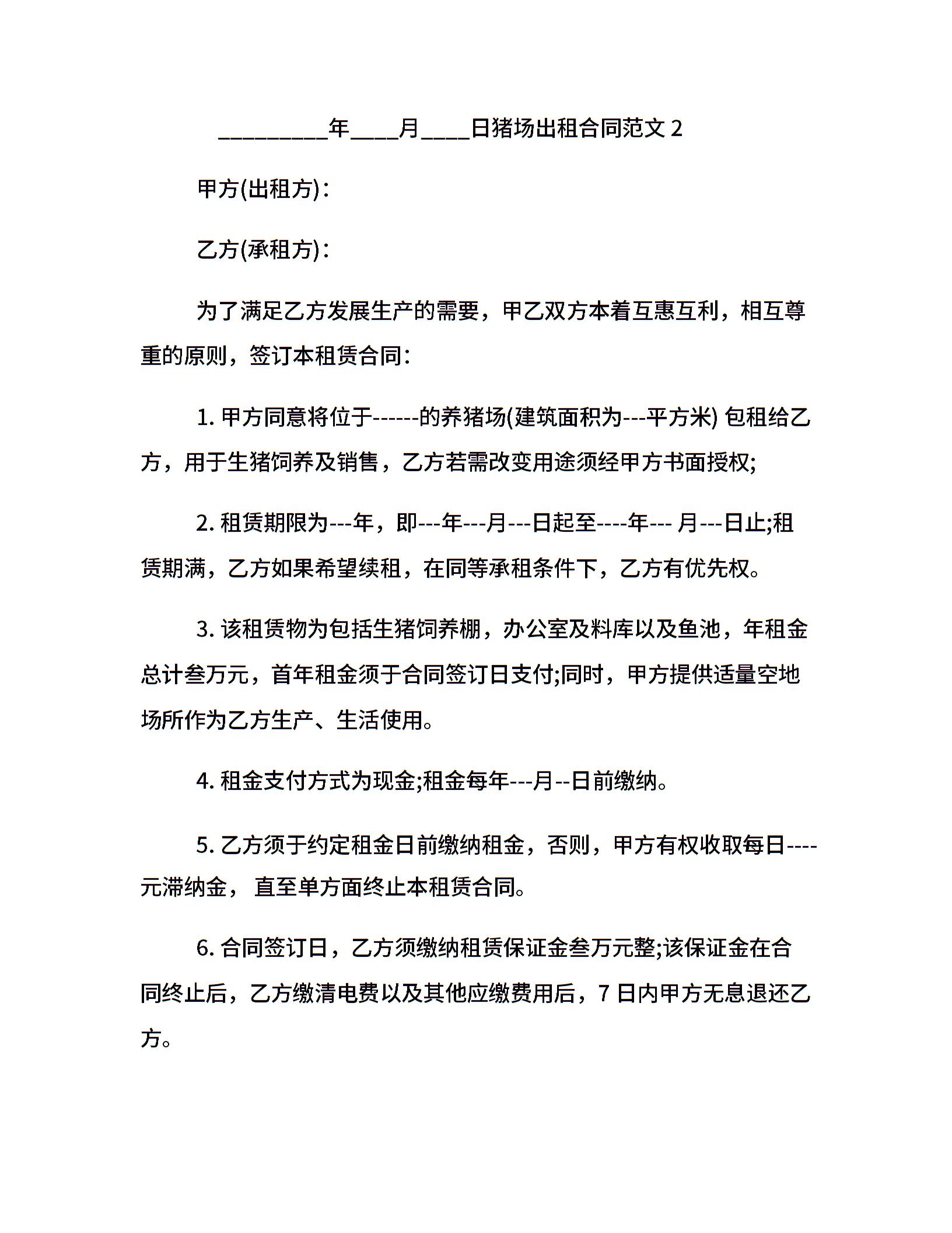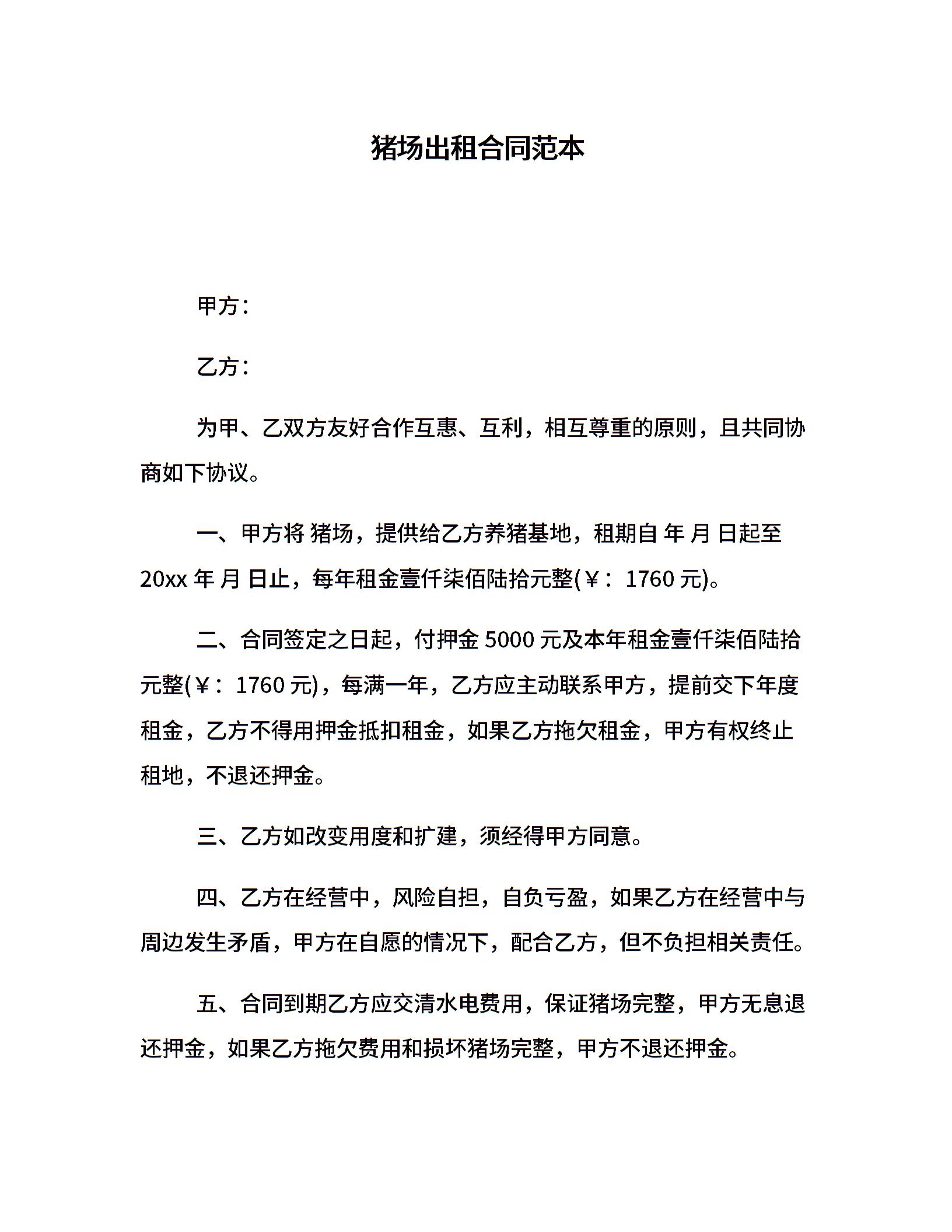 猪场出租合同范本