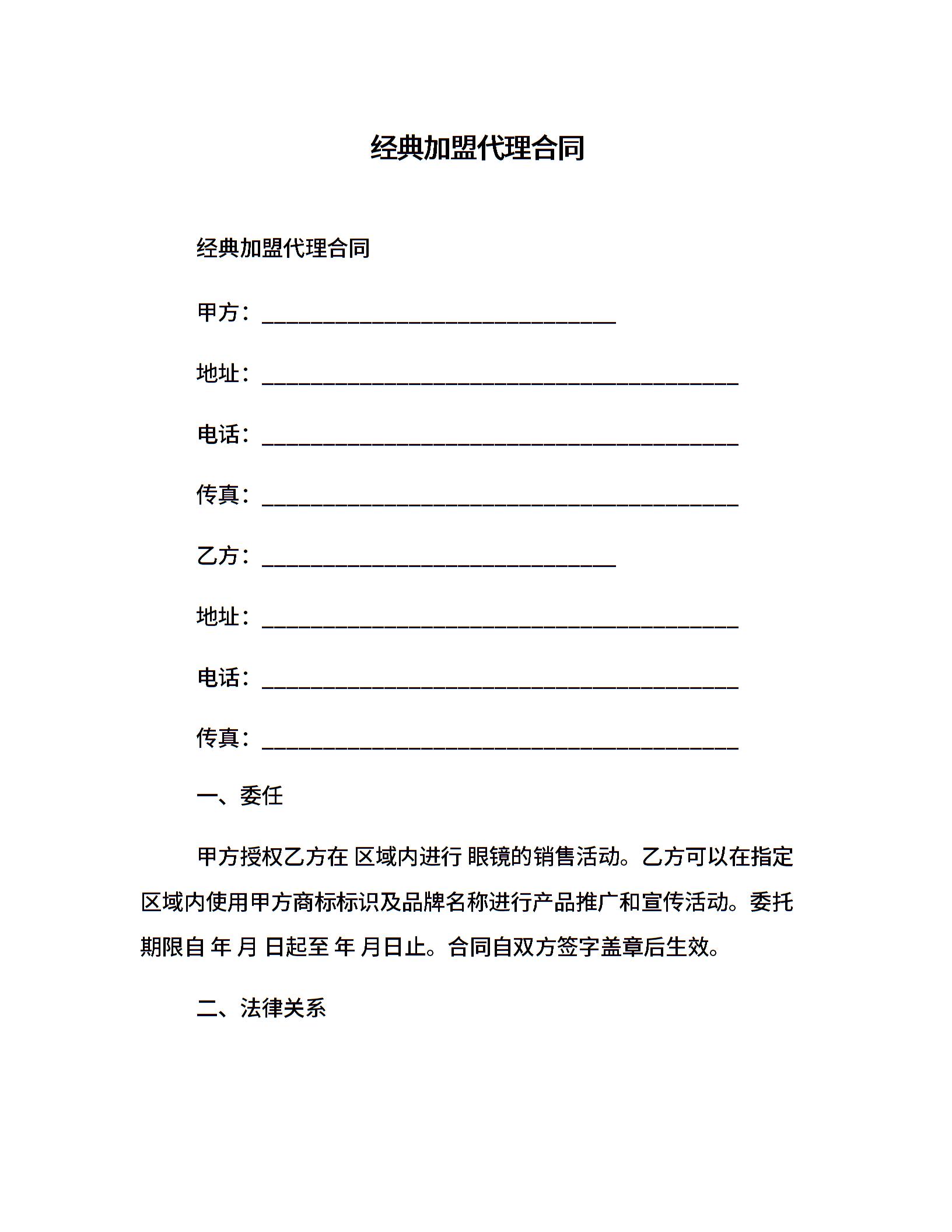 经典加盟代理合同