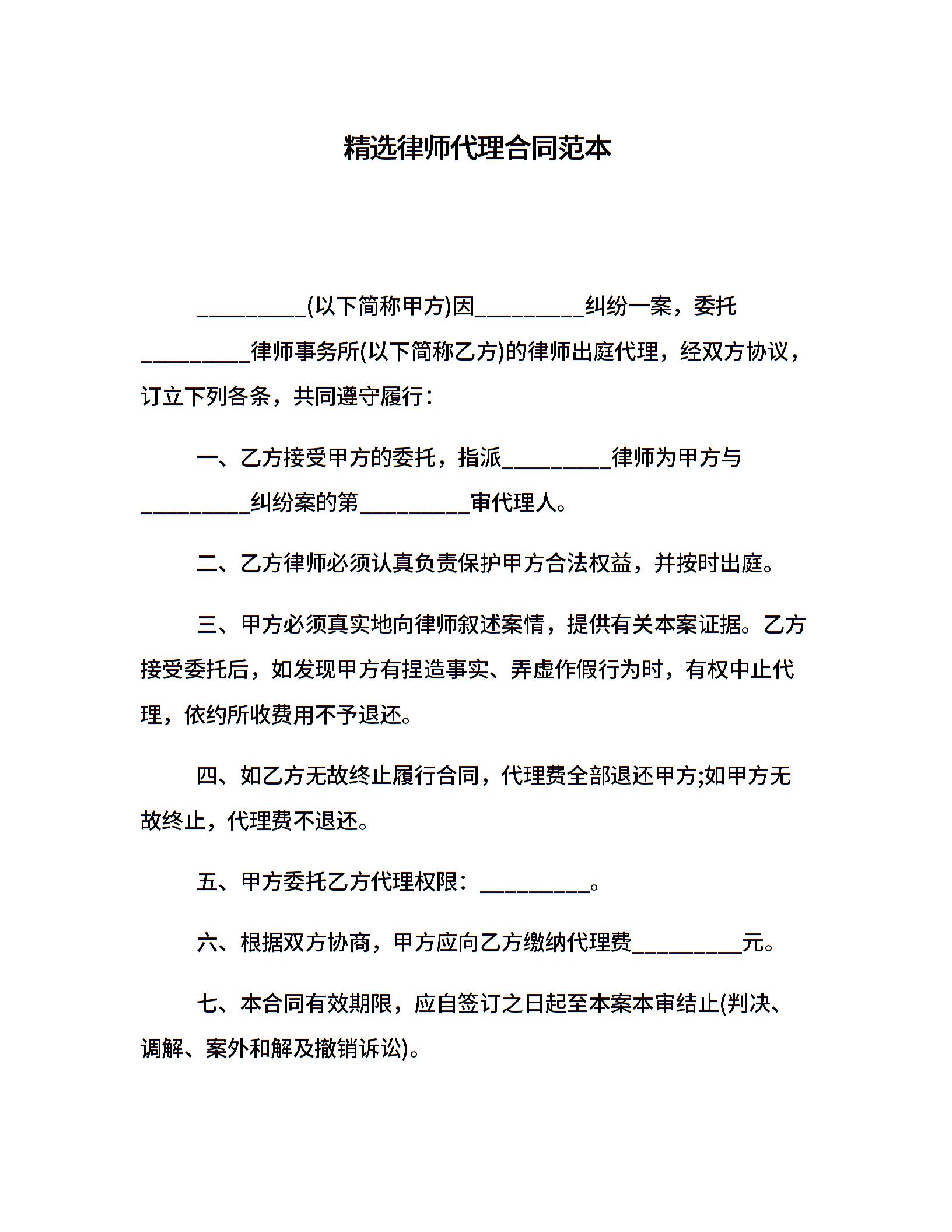 精选律师代理合同范本