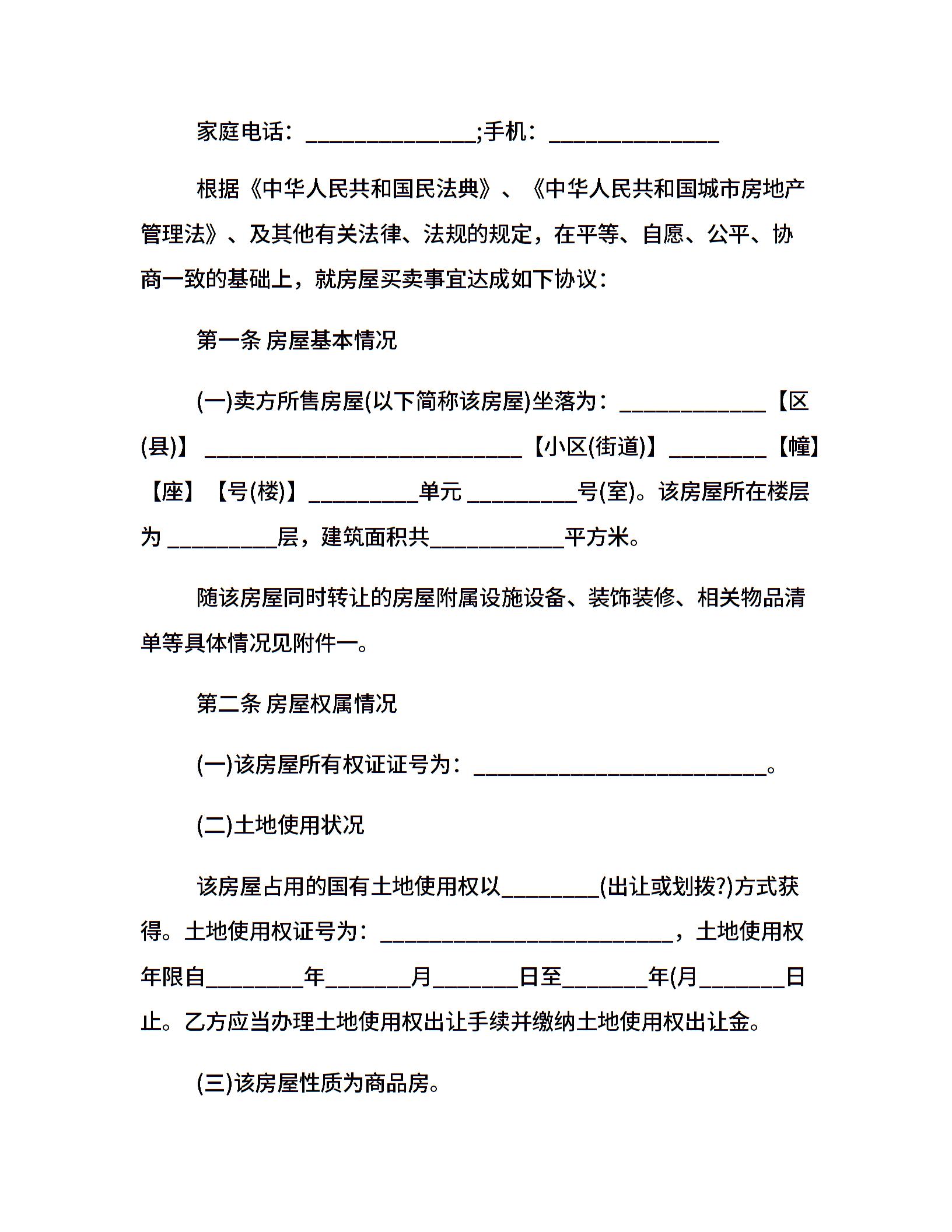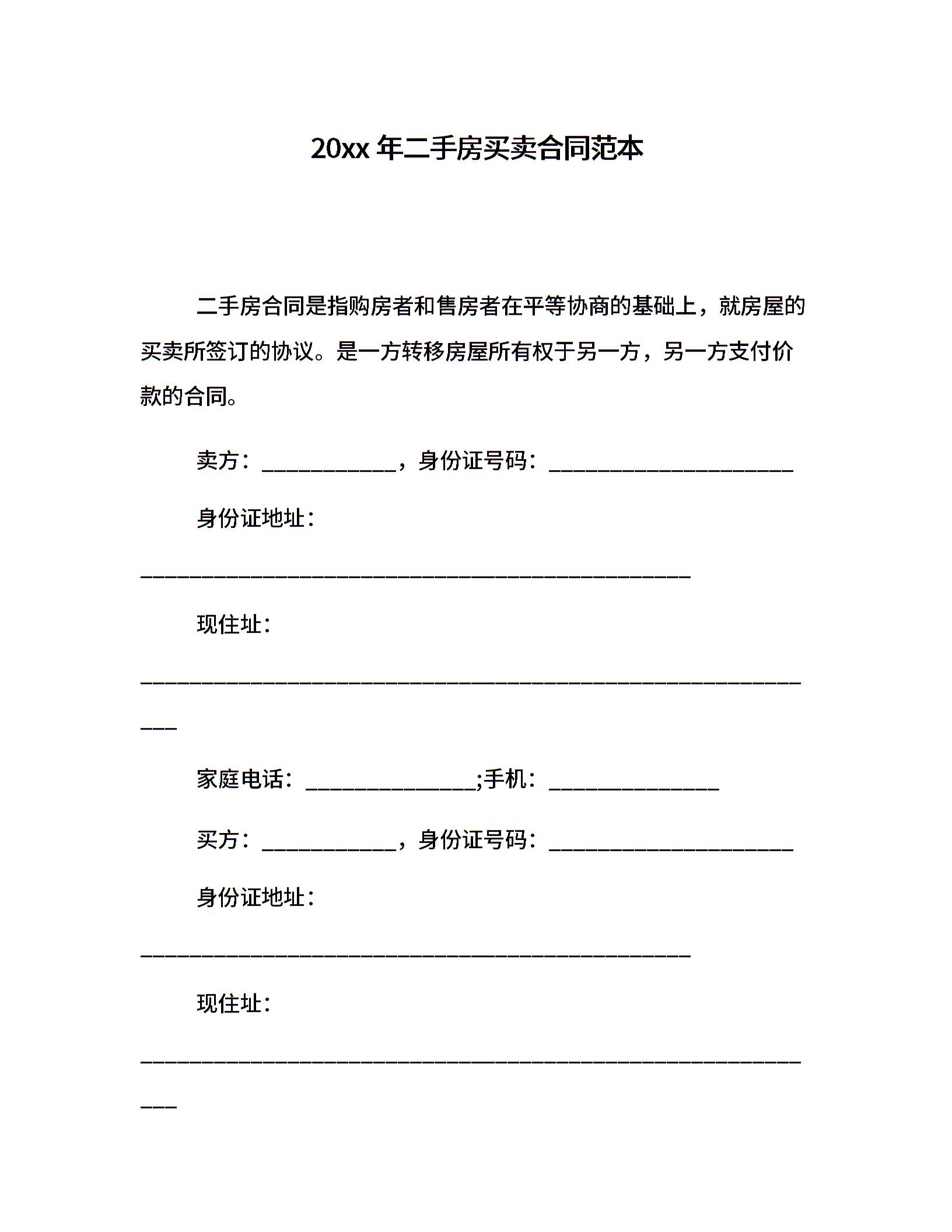20xx年二手房买卖合同范本