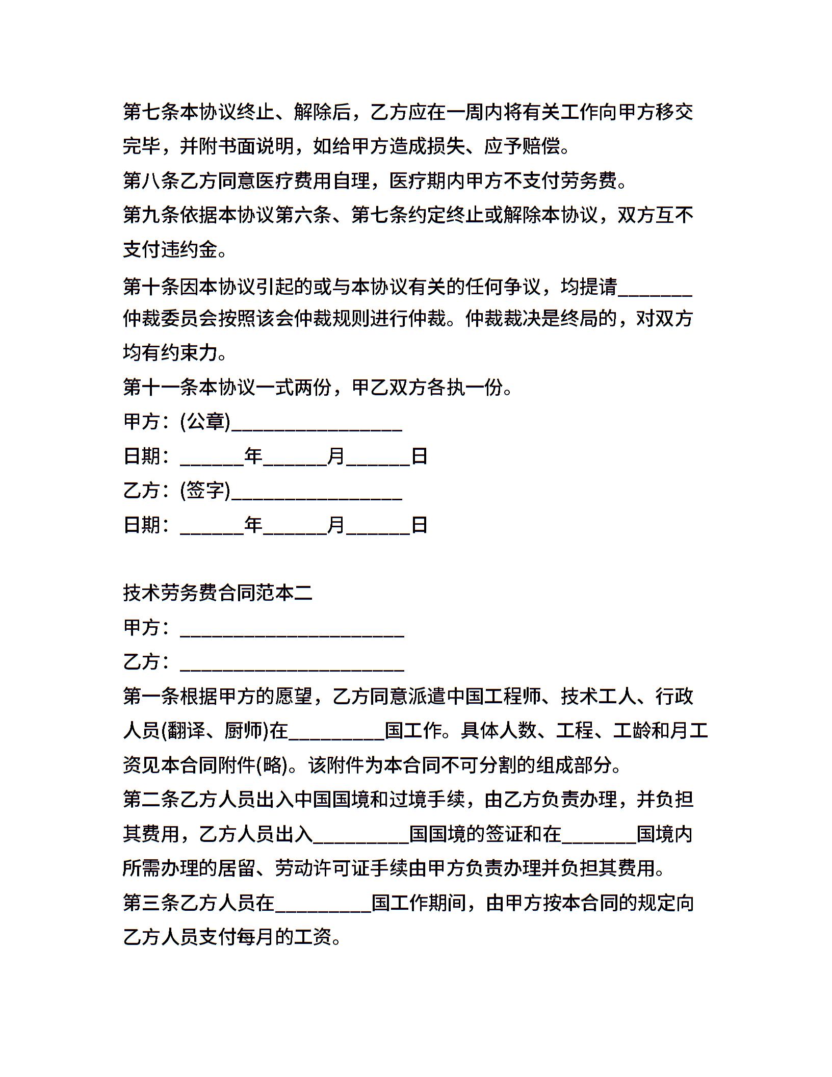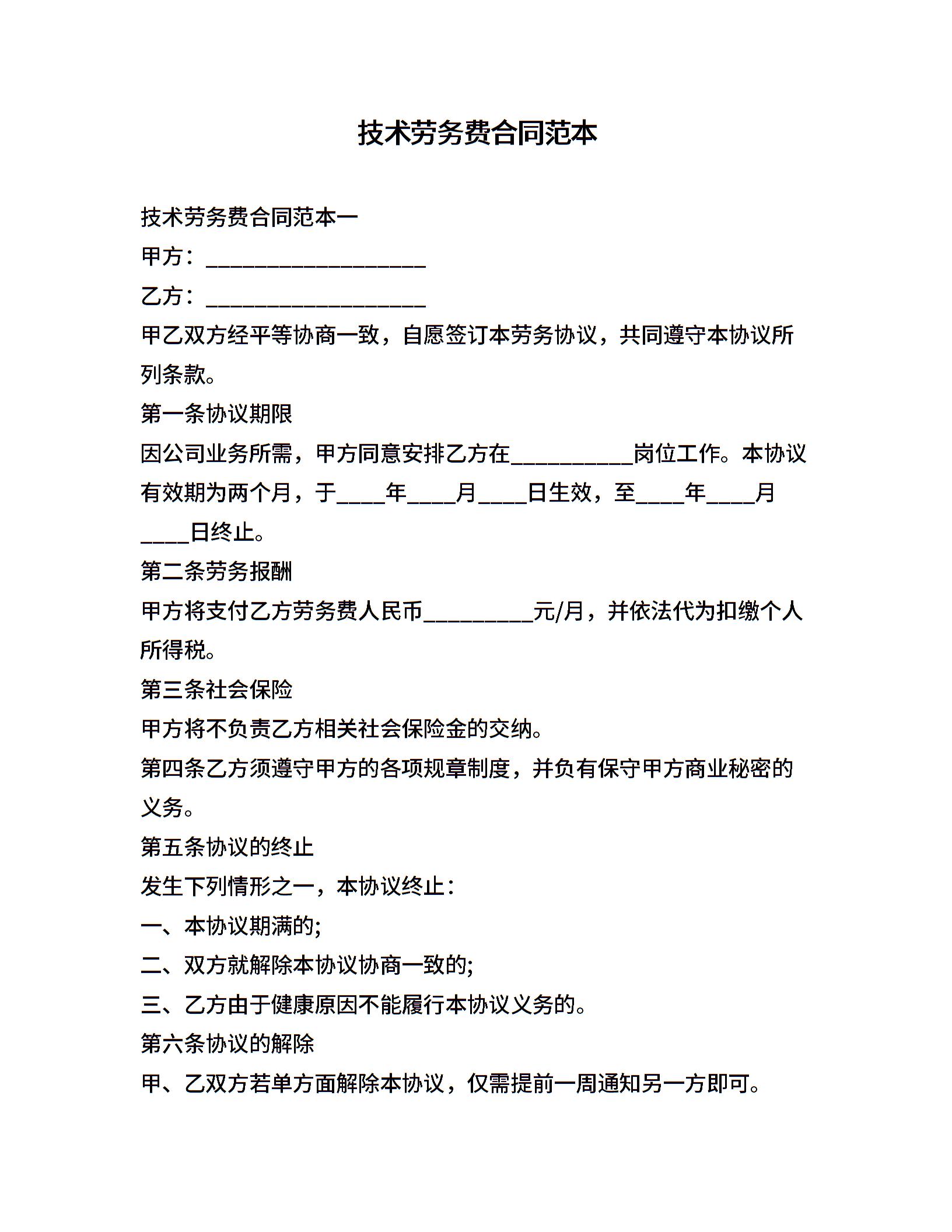 技术劳务费合同范本