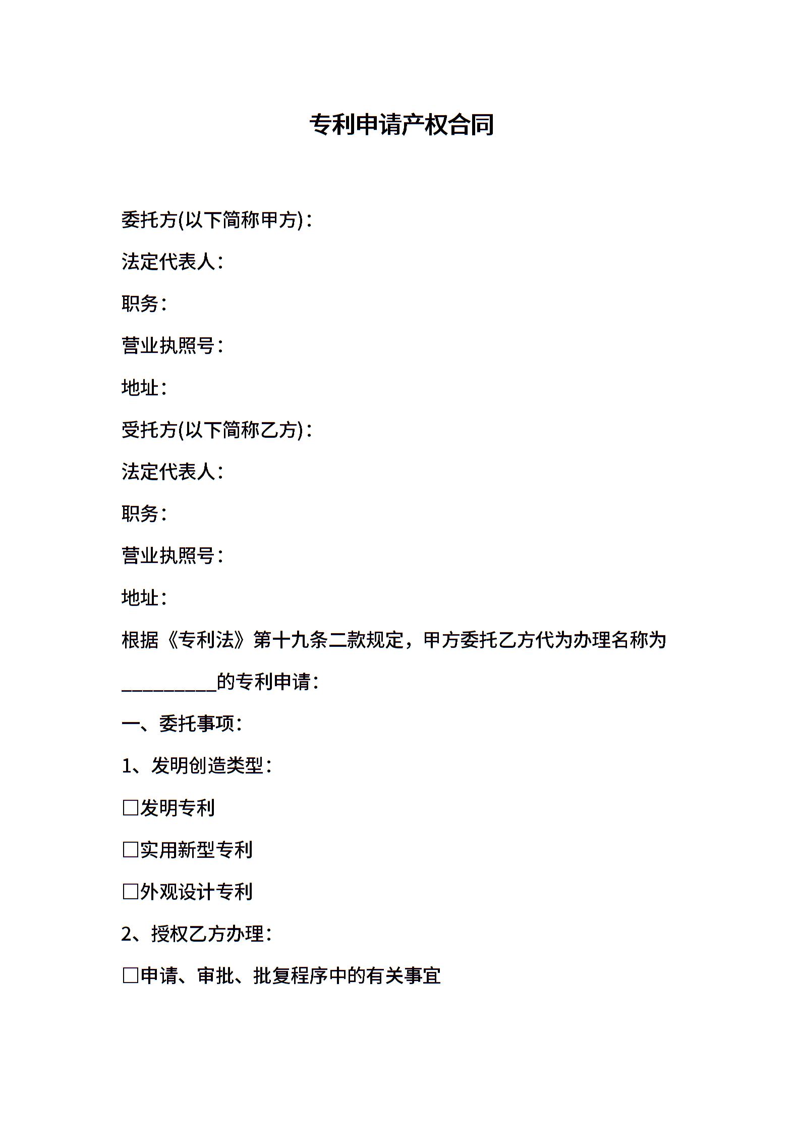 专利申请产权合同