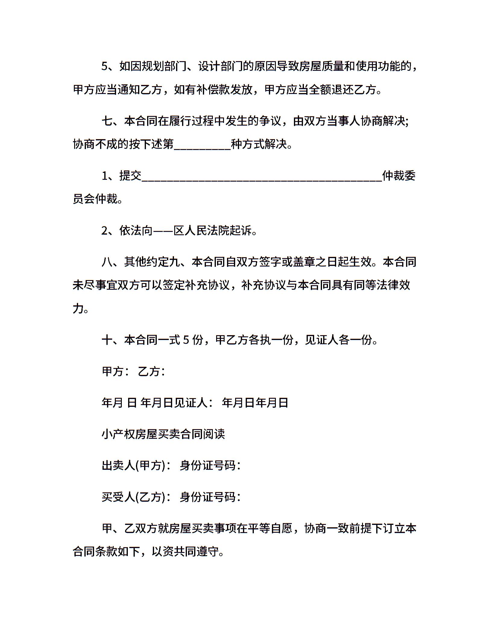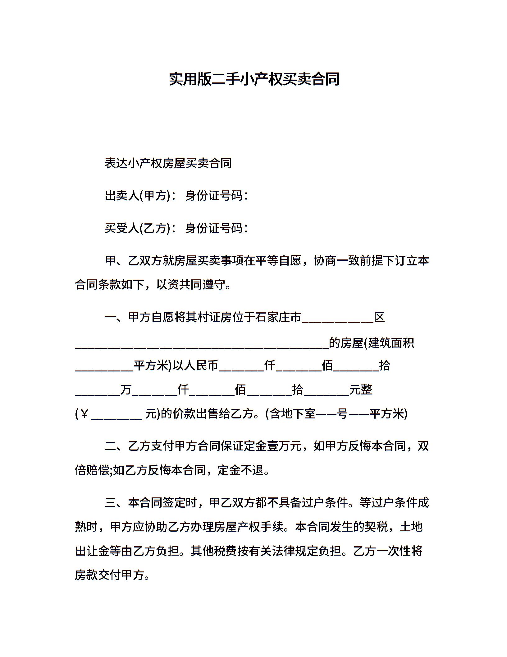 实用版二手小产权买卖合同