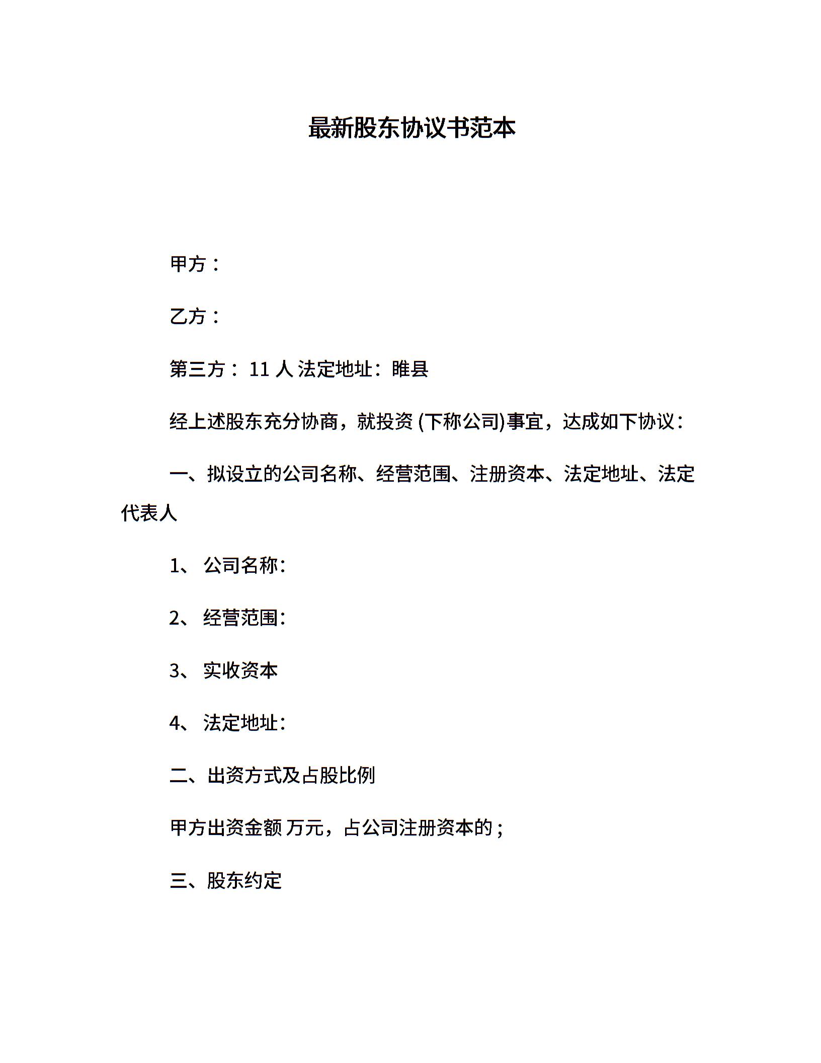 最新股东协议书范本