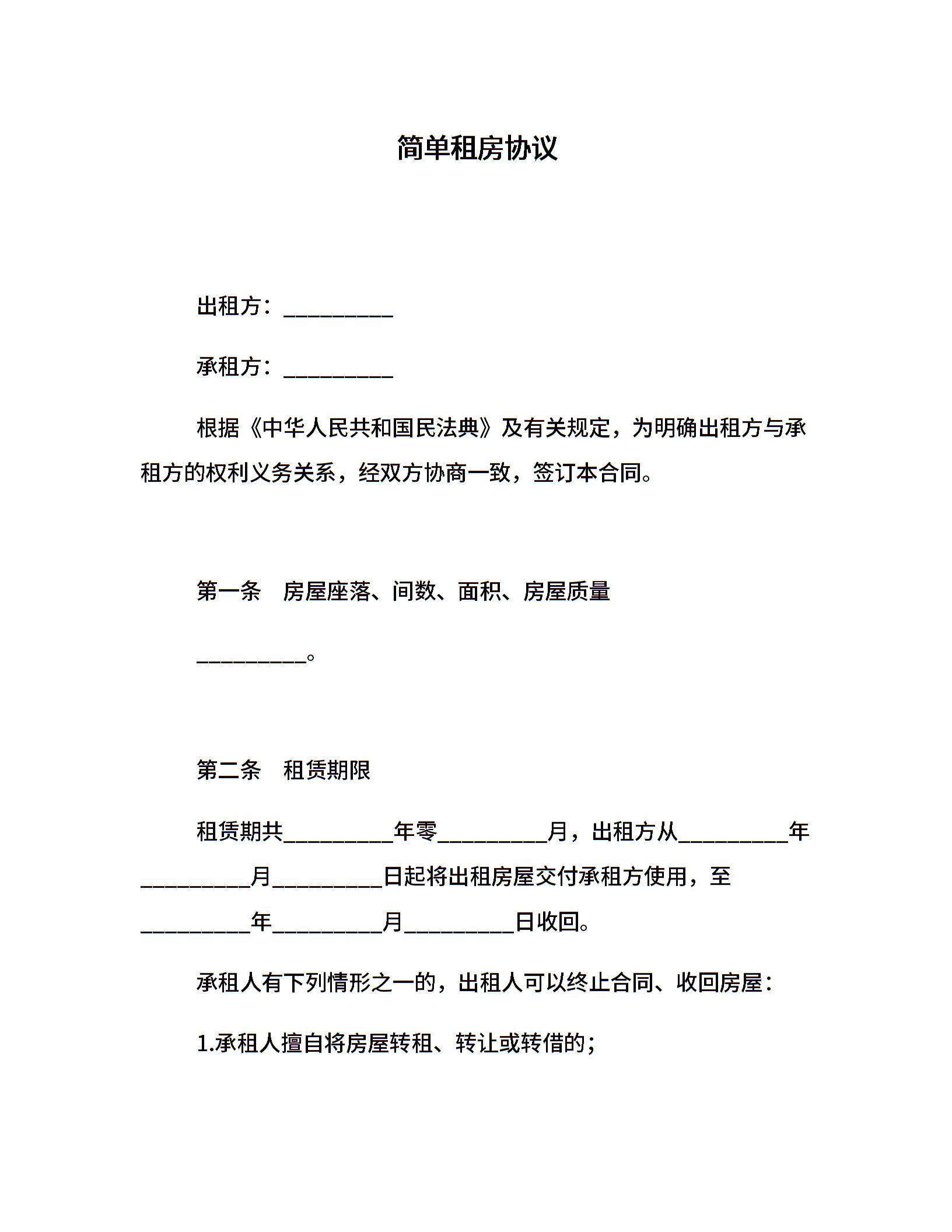 简单租房协议