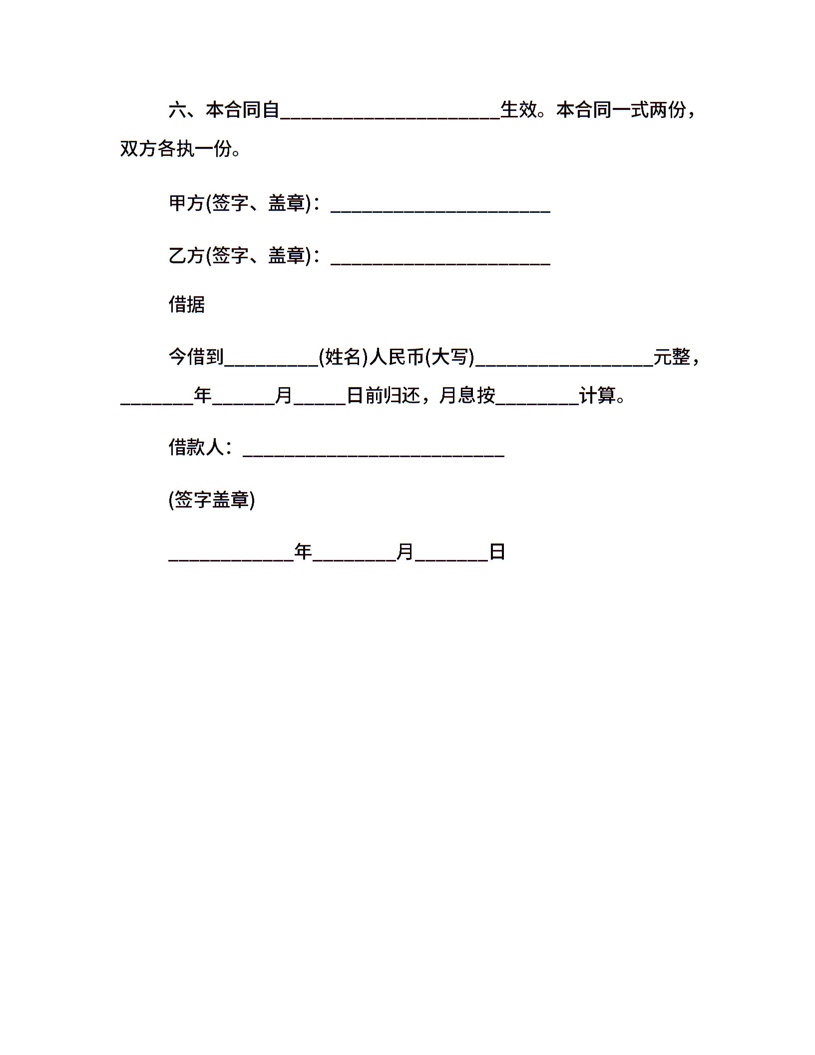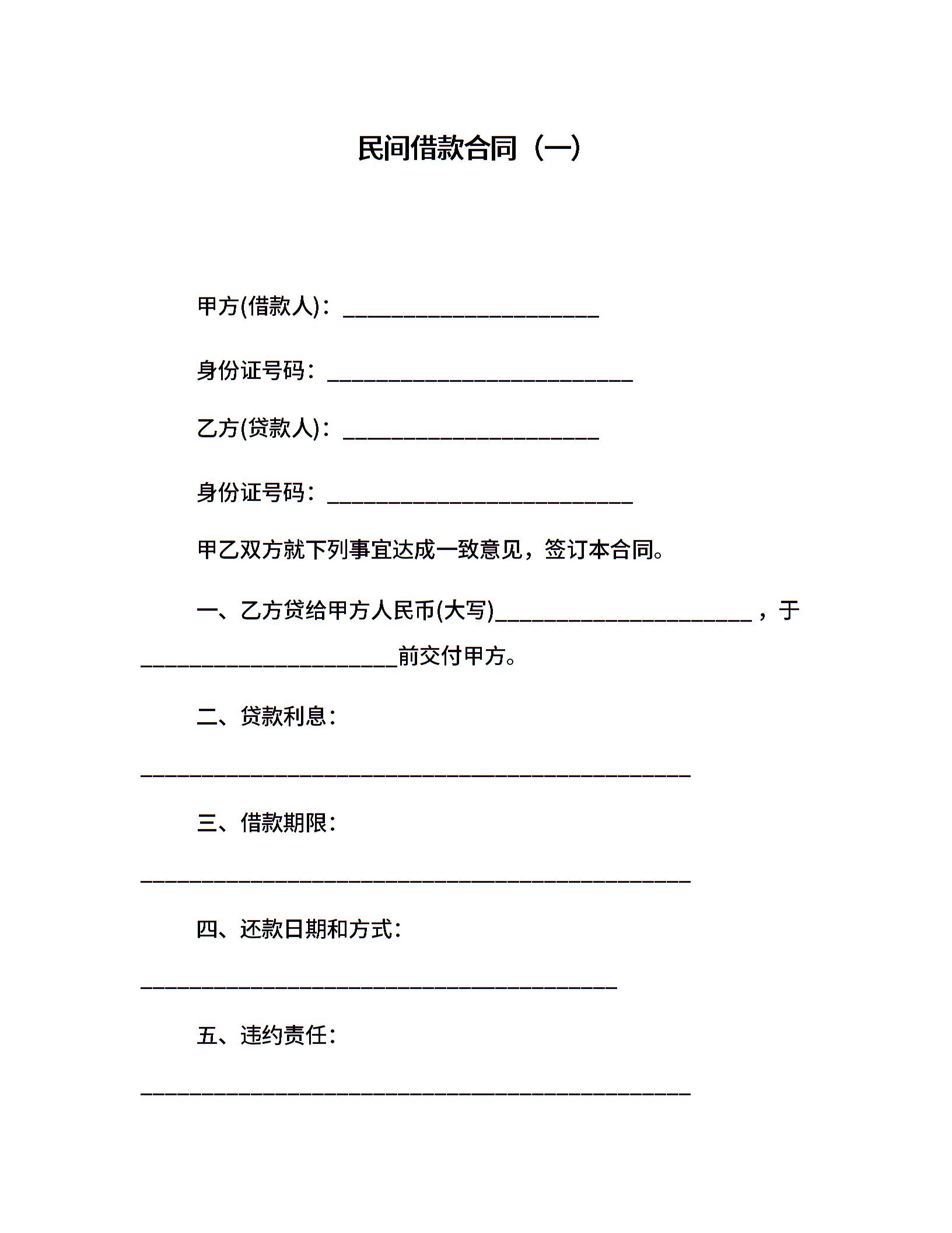 民间借款合同(一)
