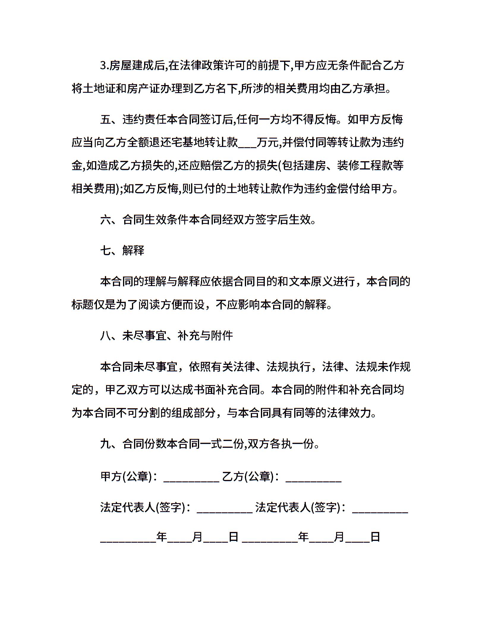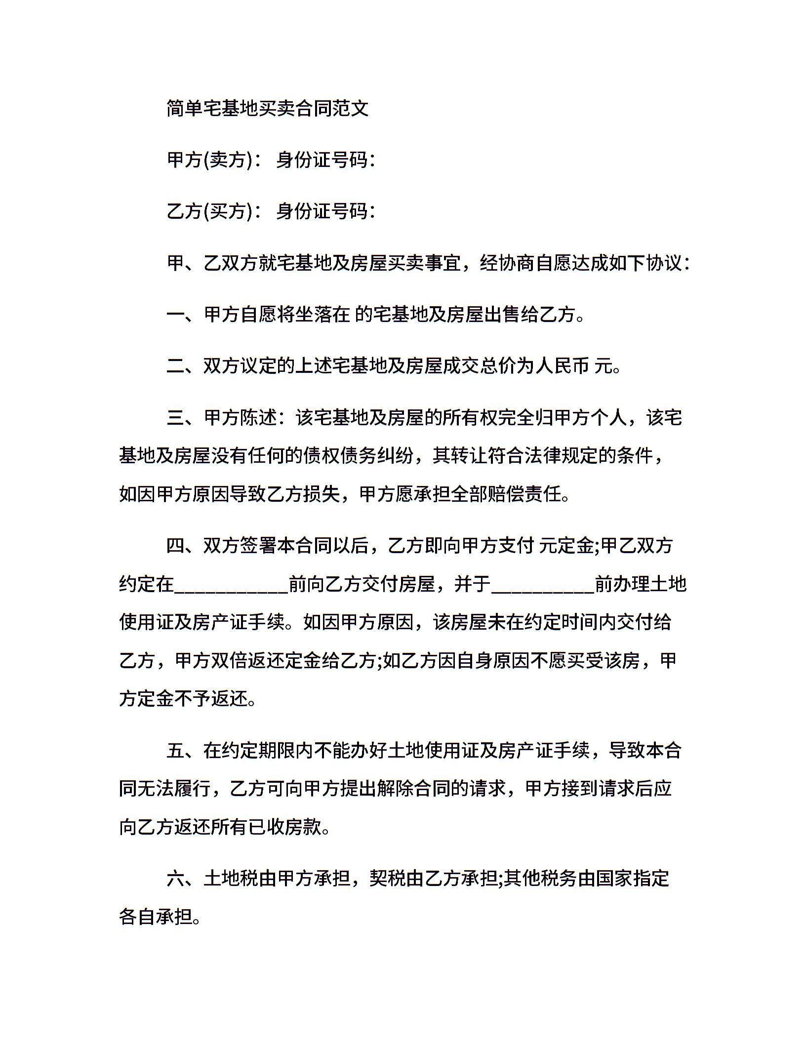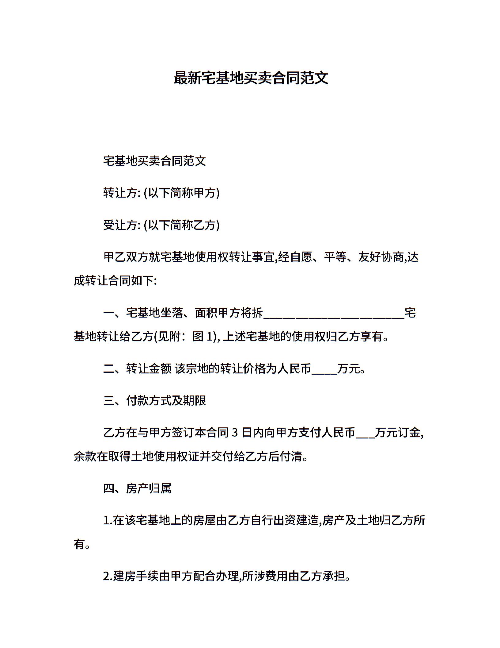 最新宅基地买卖合同范文