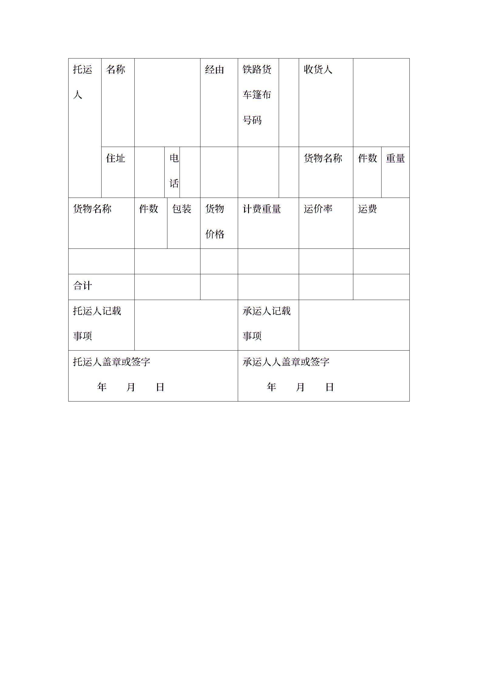 铁路局货物运单