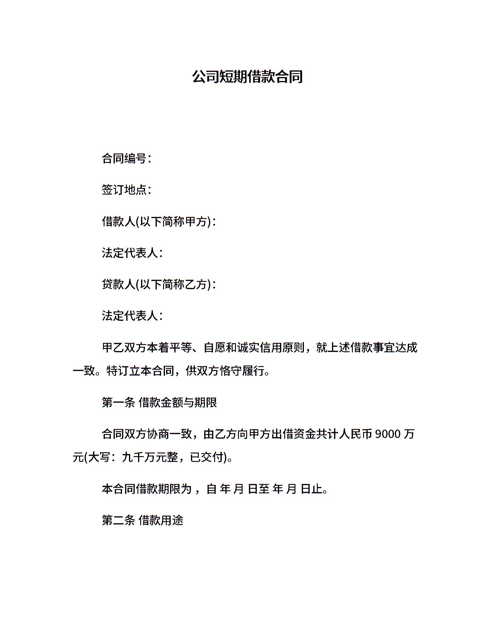 公司短期借款合同