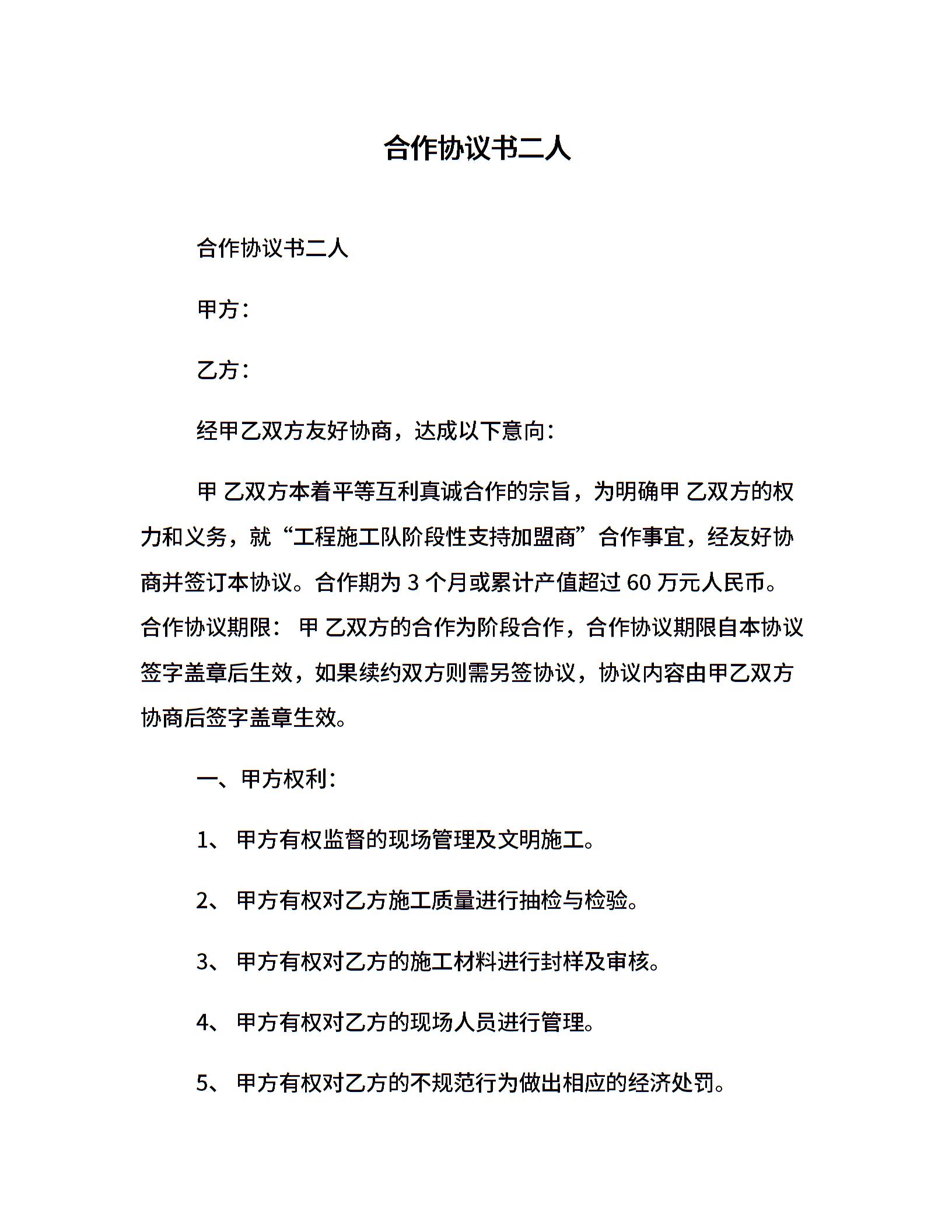 当前位置:量子办公 > 合同模板 > 合作合同 >