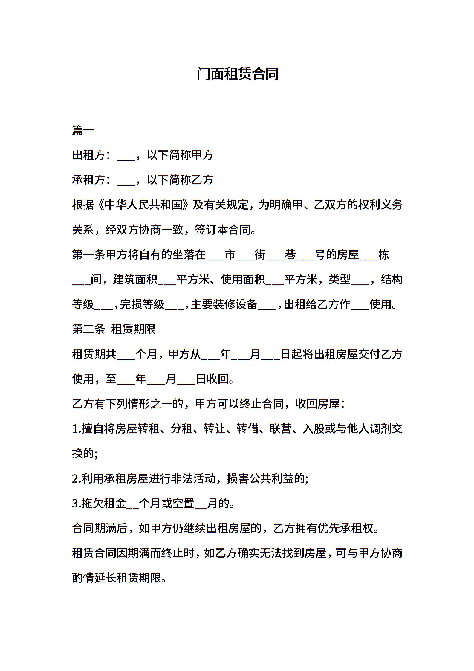 门面租赁合同