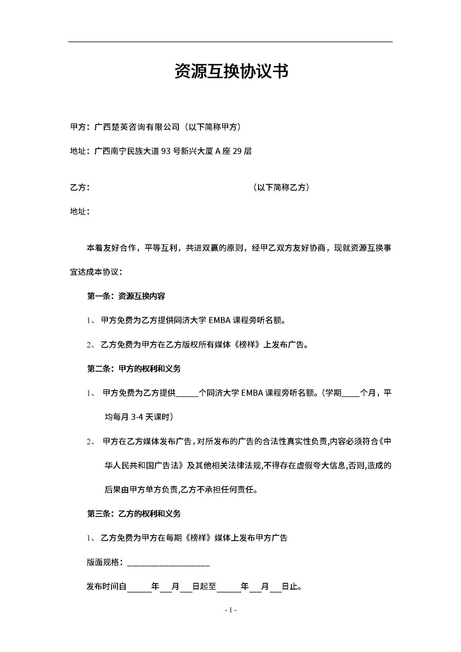 当前位置:量子办公 > 合同模板 > 互换协议 >