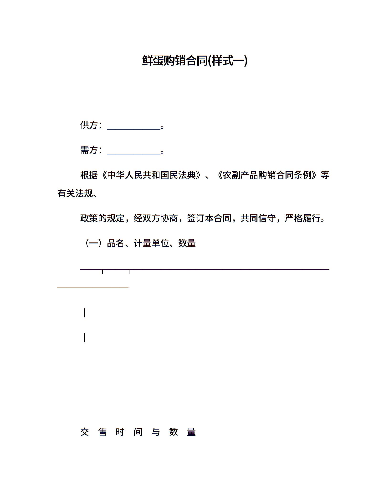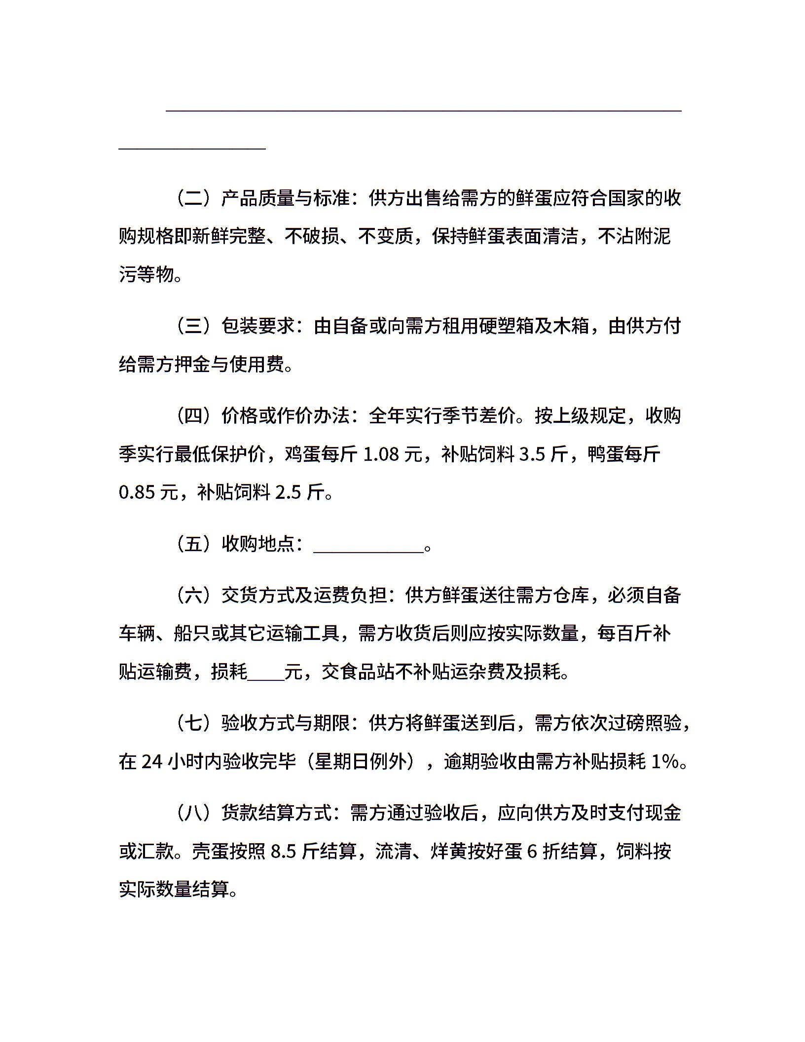 鲜蛋购销合同(样式一)
