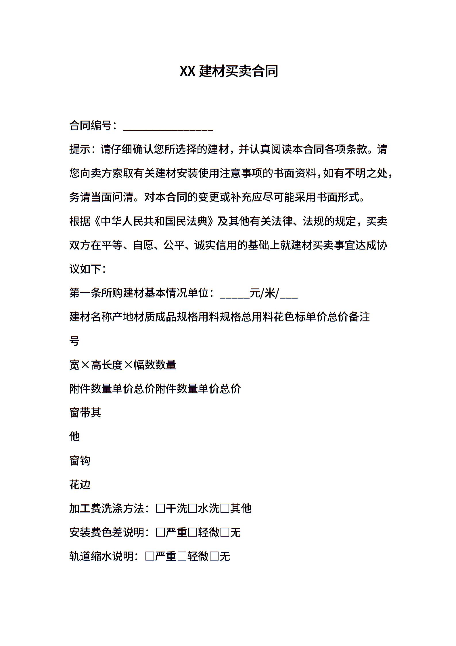 XX建材买卖合同