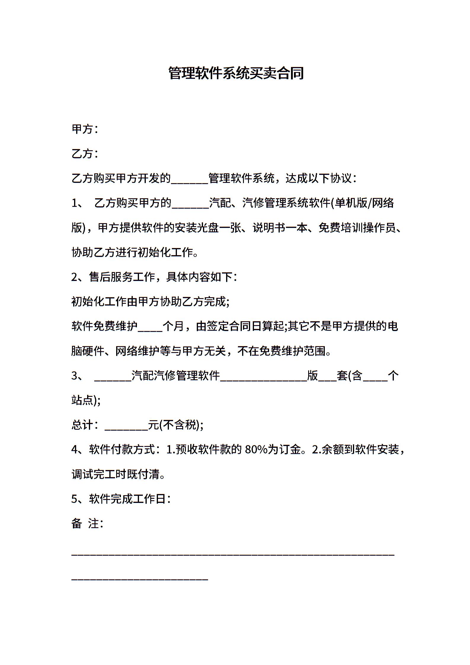 版权管理软件系统买卖合同
