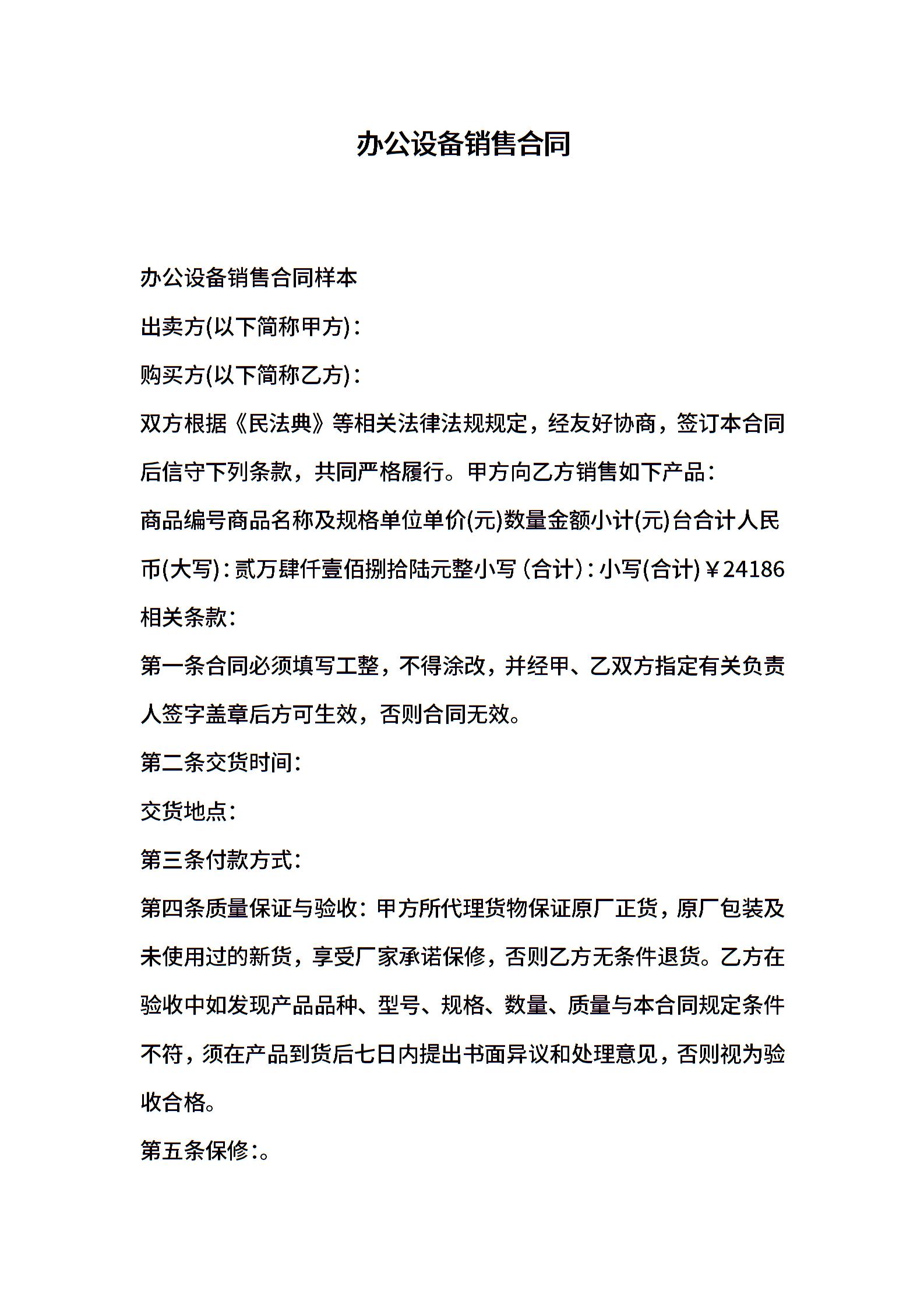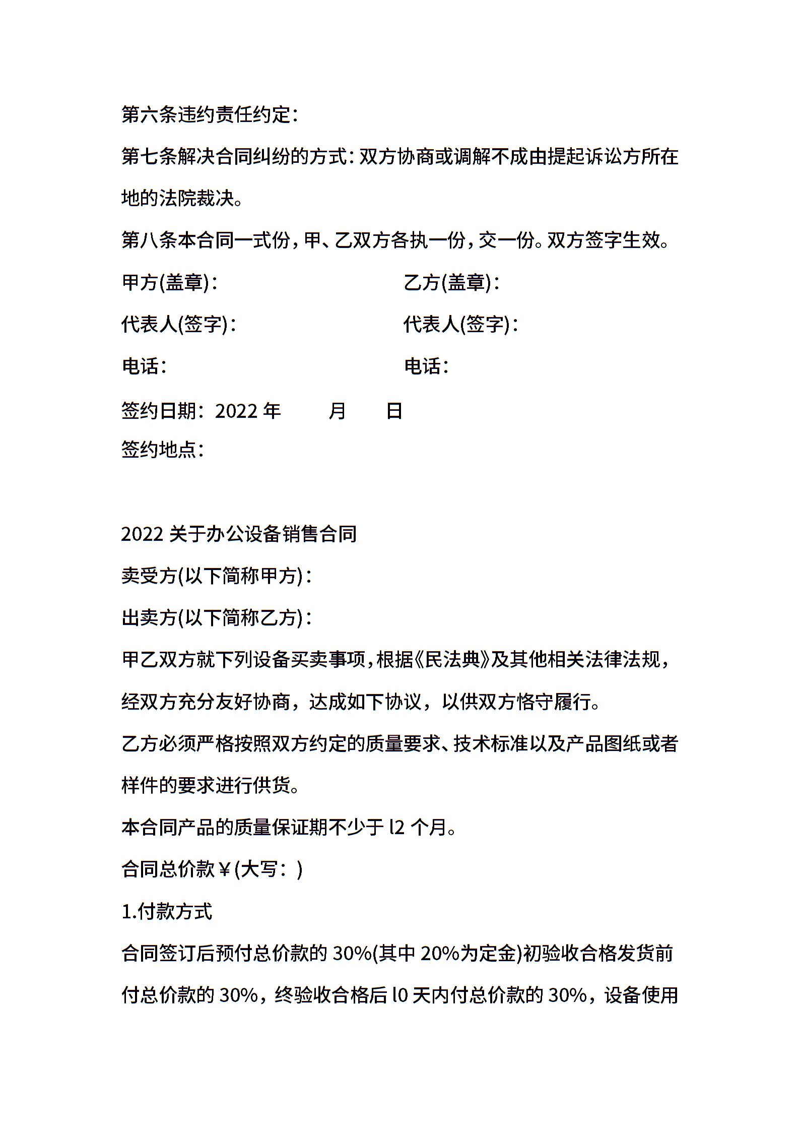 当前位置:量子办公 > 合同模板 > 销售合同 >