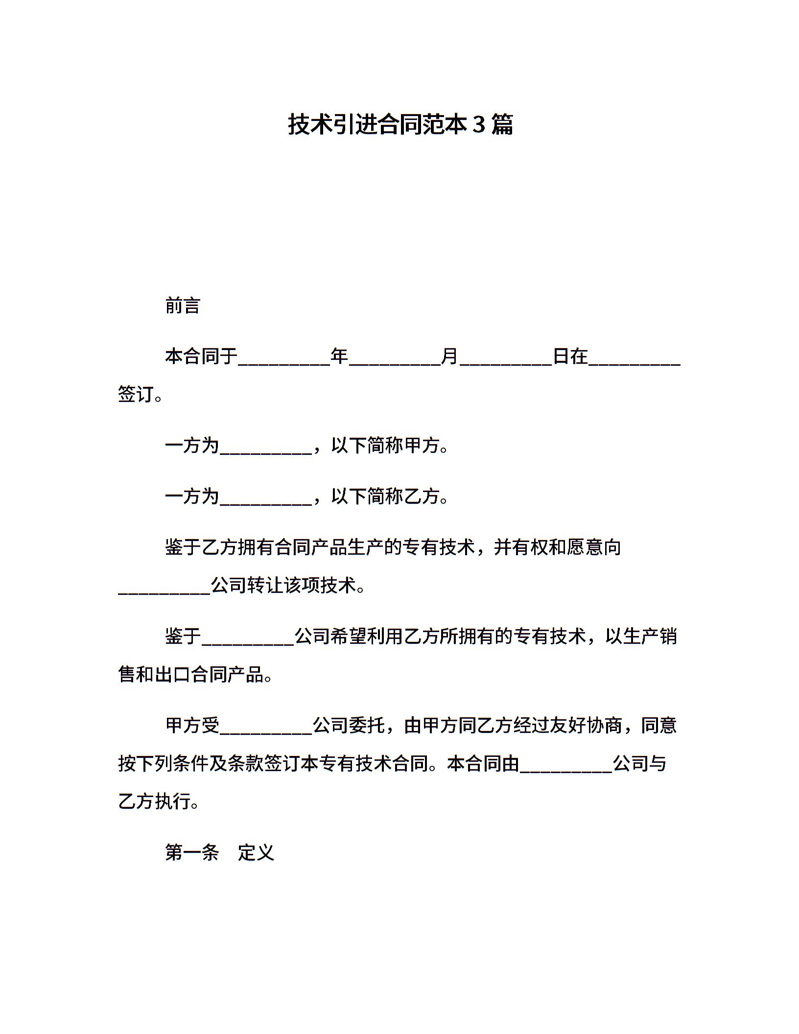 技术引进合同范本3篇