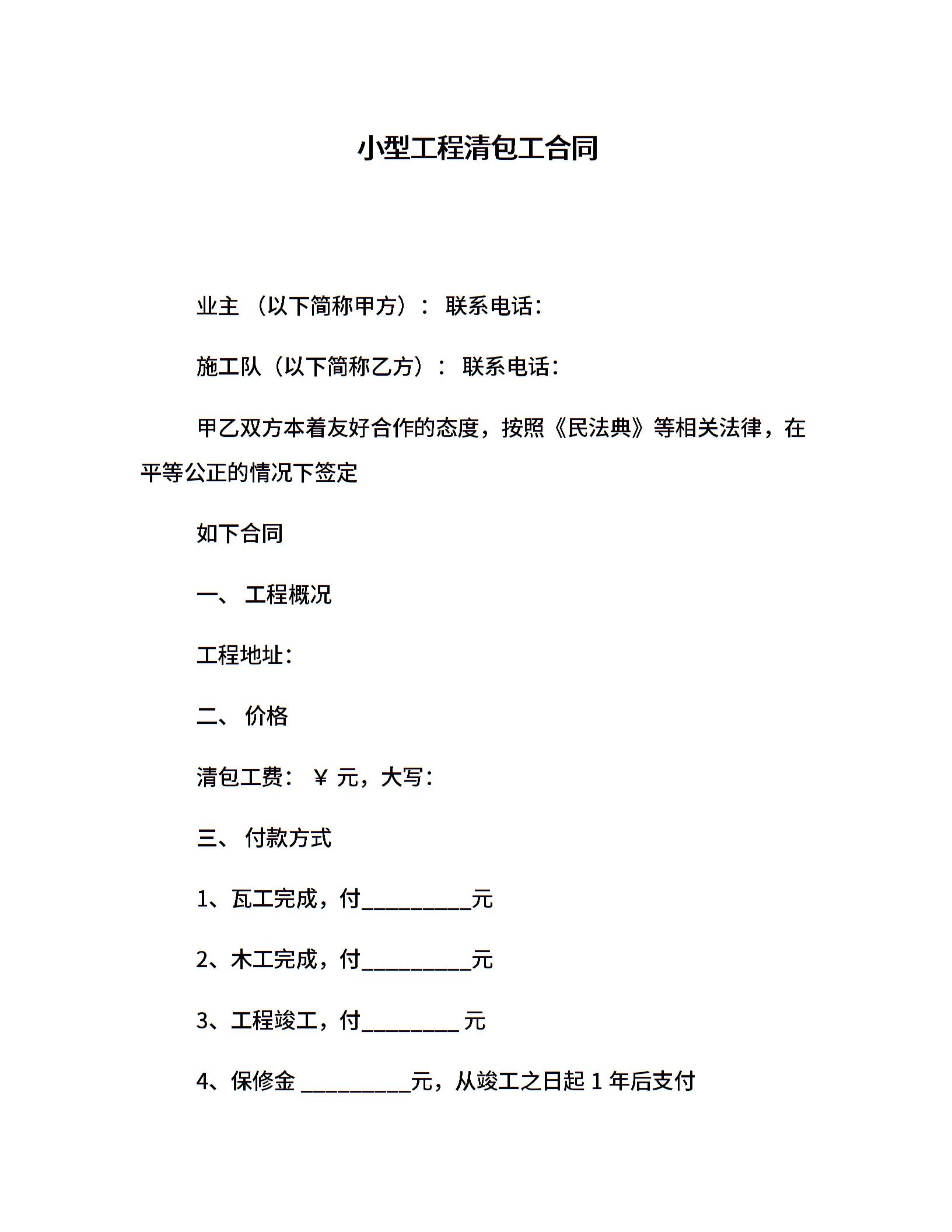 小型工程清包工合同