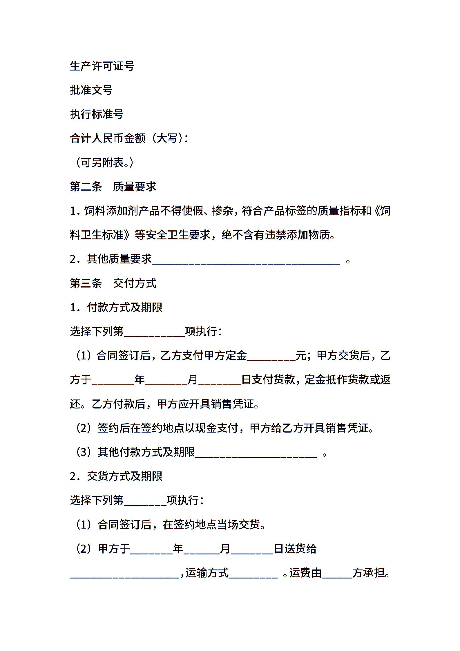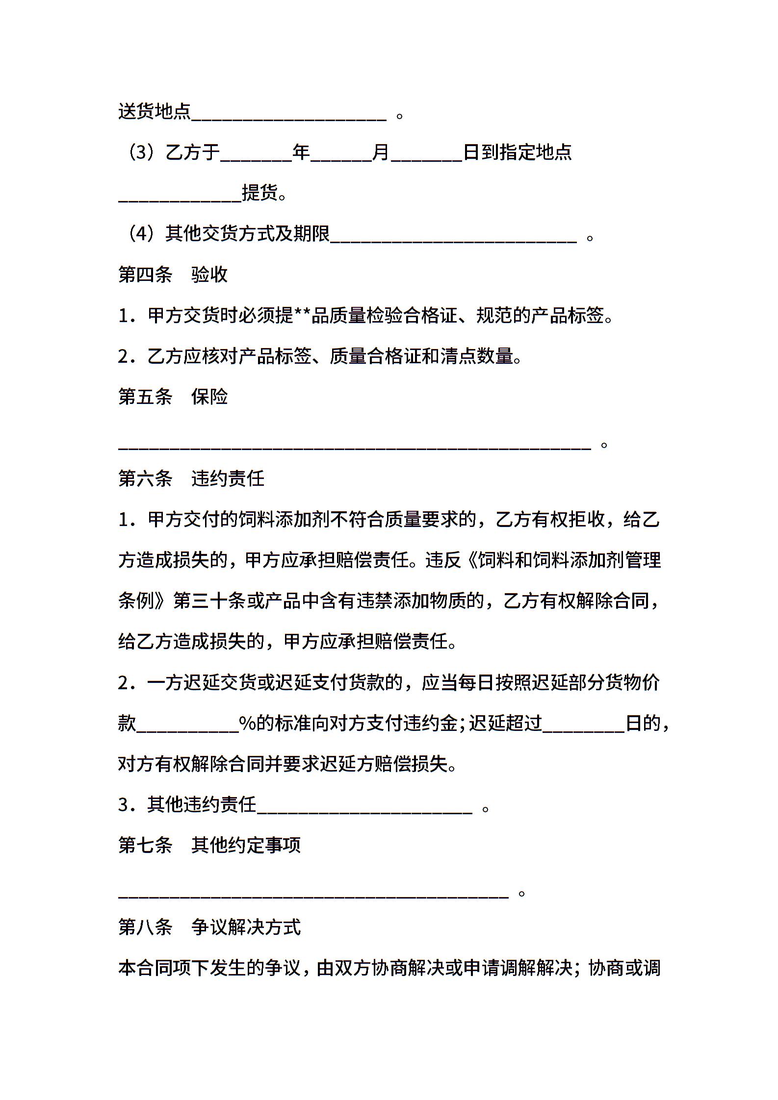 上海市饲料添加剂买卖合同