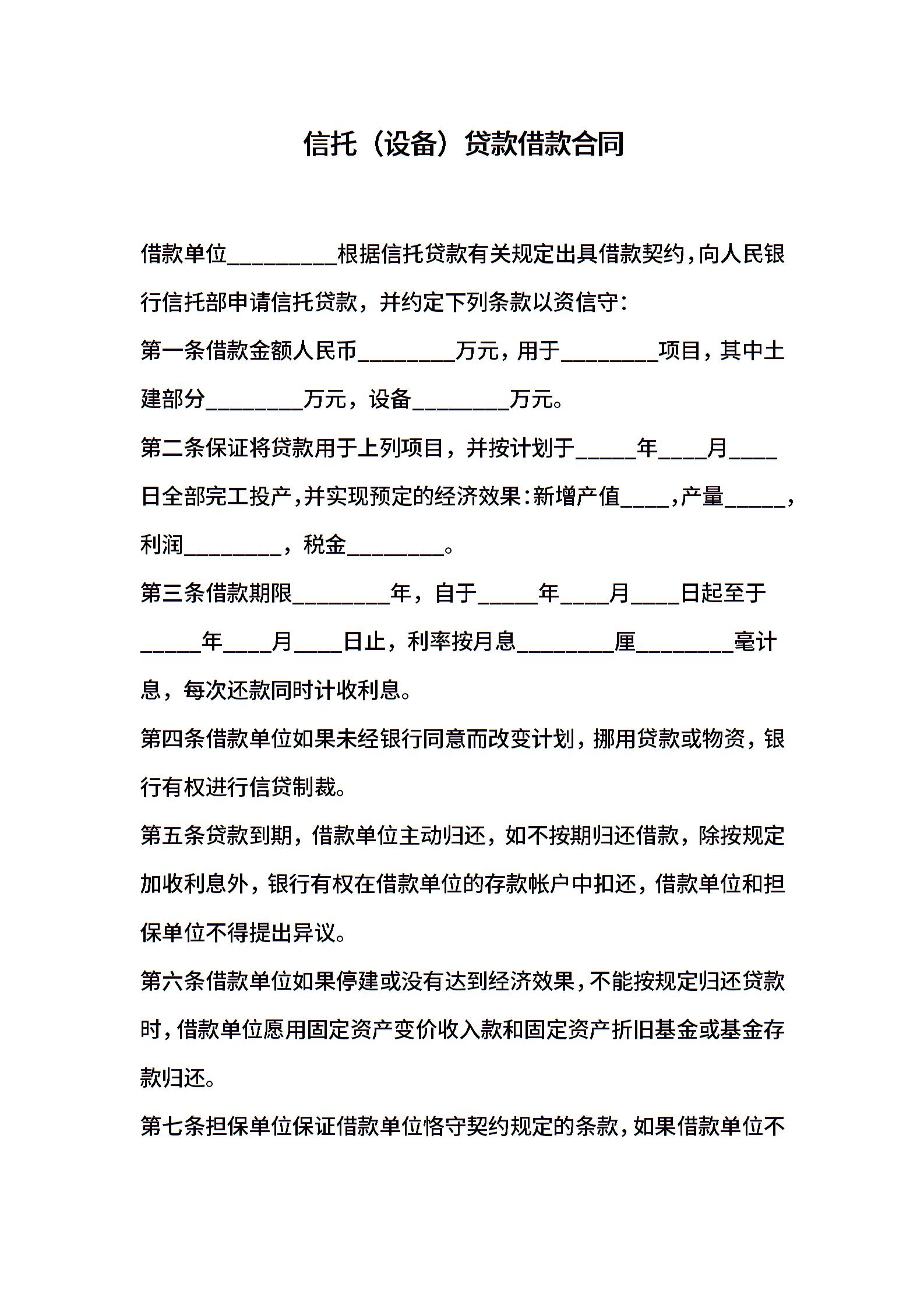信托(设备)贷款借款合同
