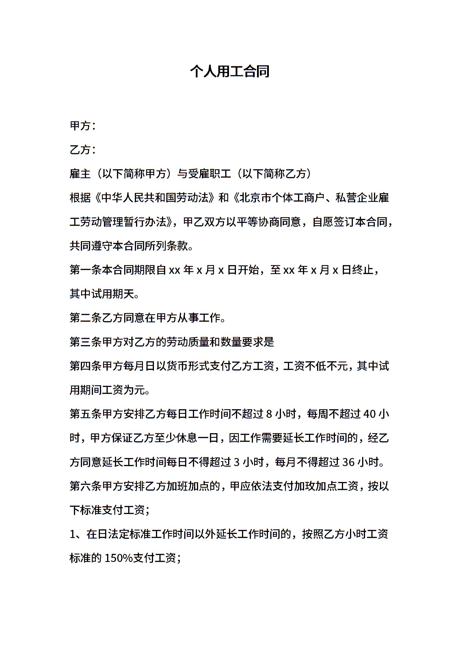 个人用工合同