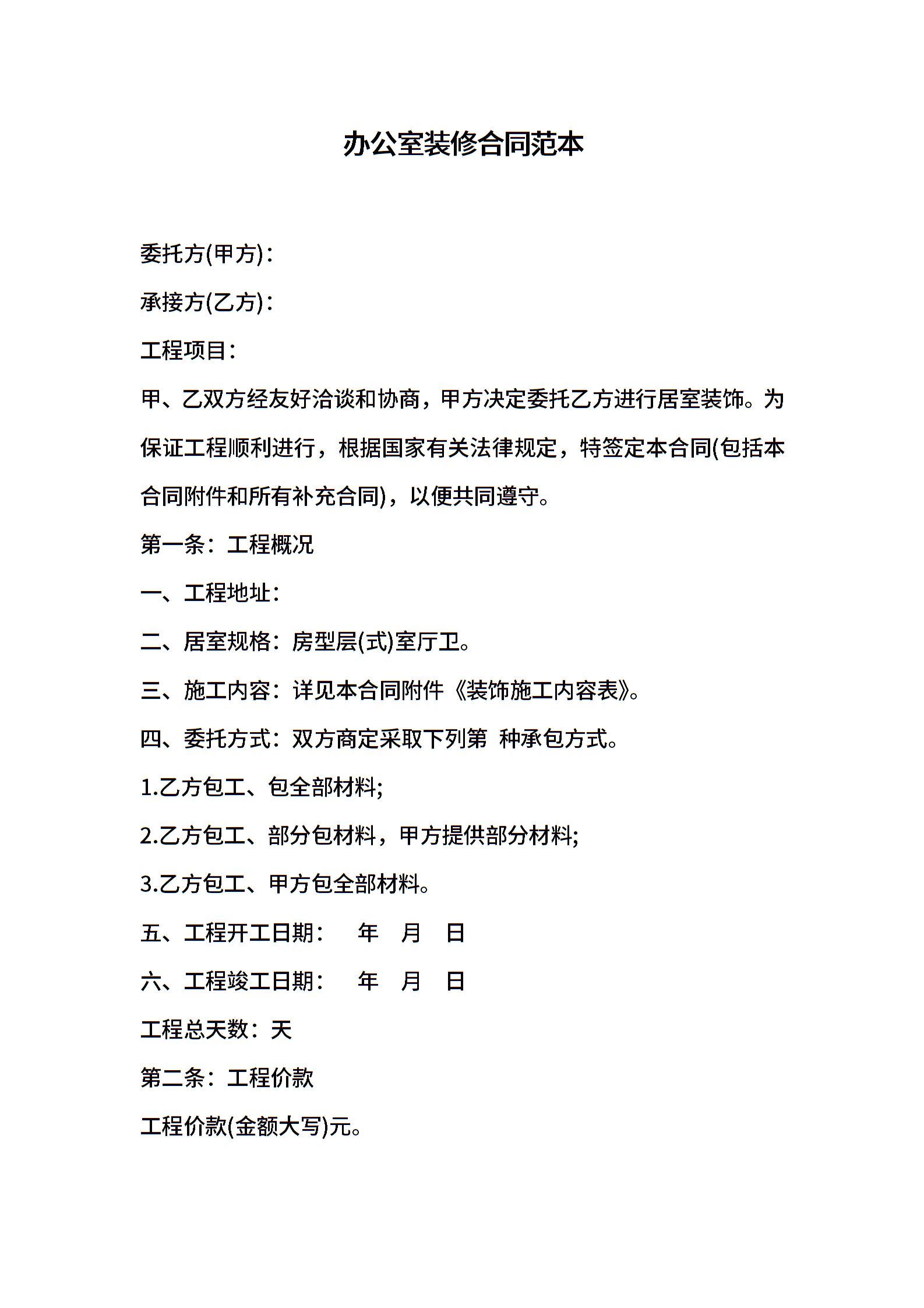 办公室装修合同范本