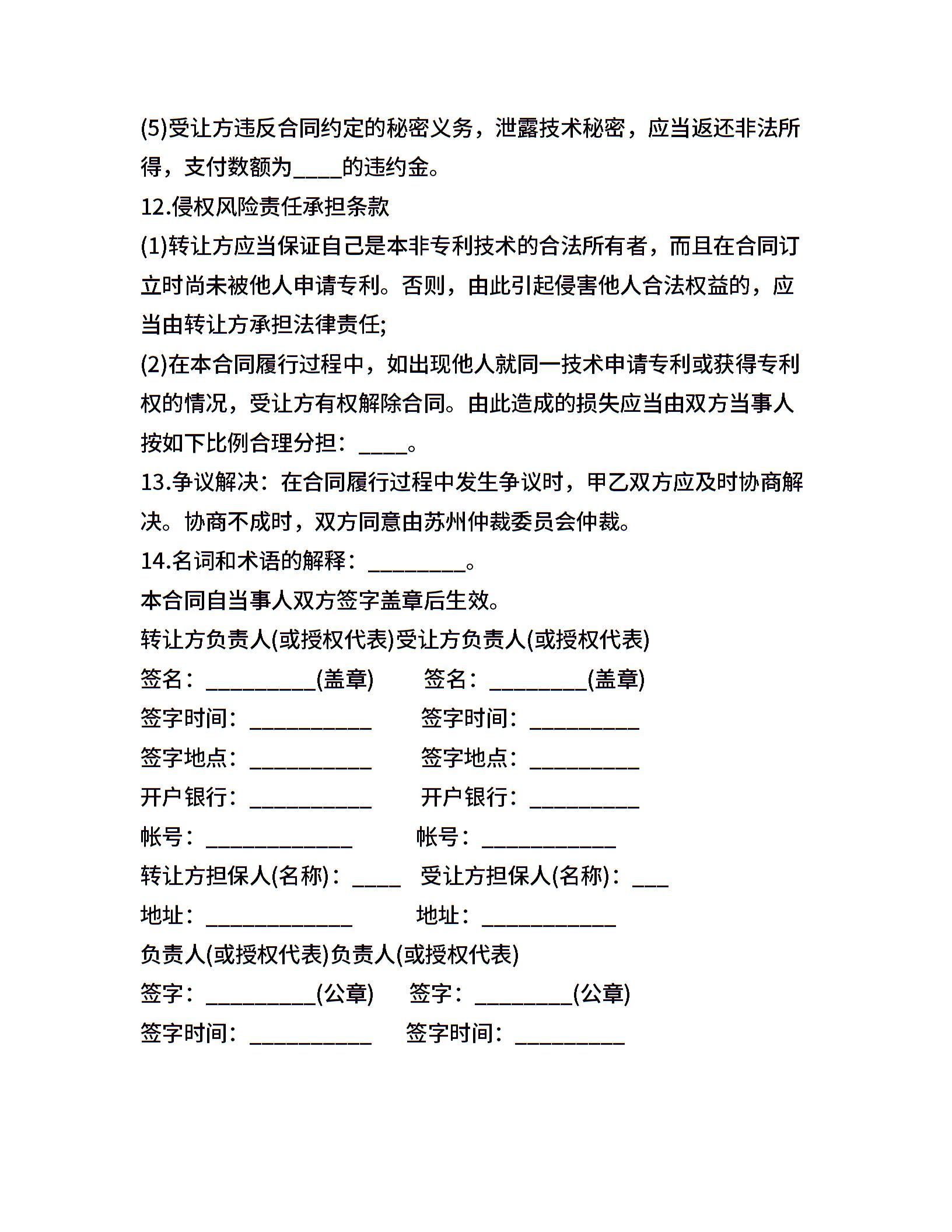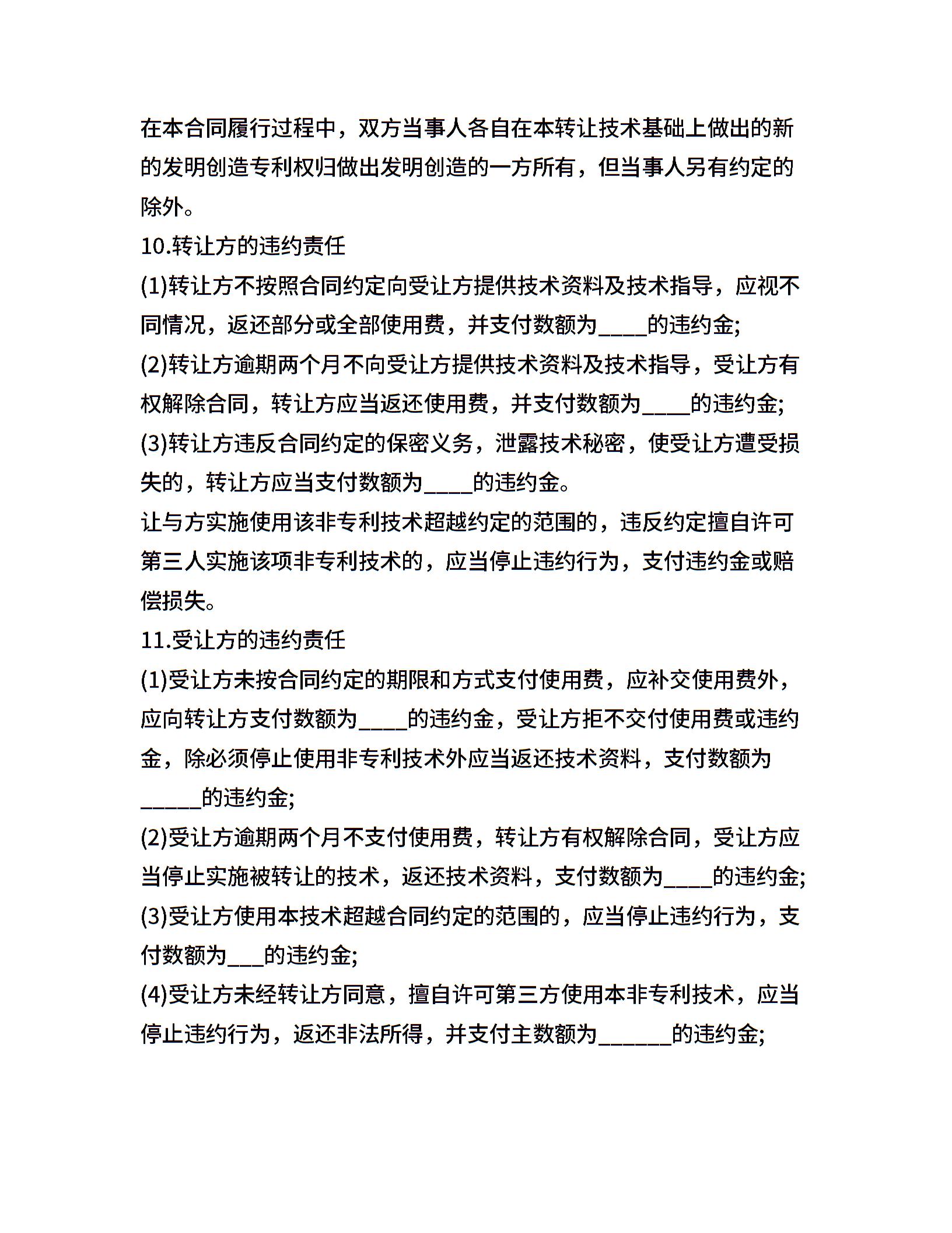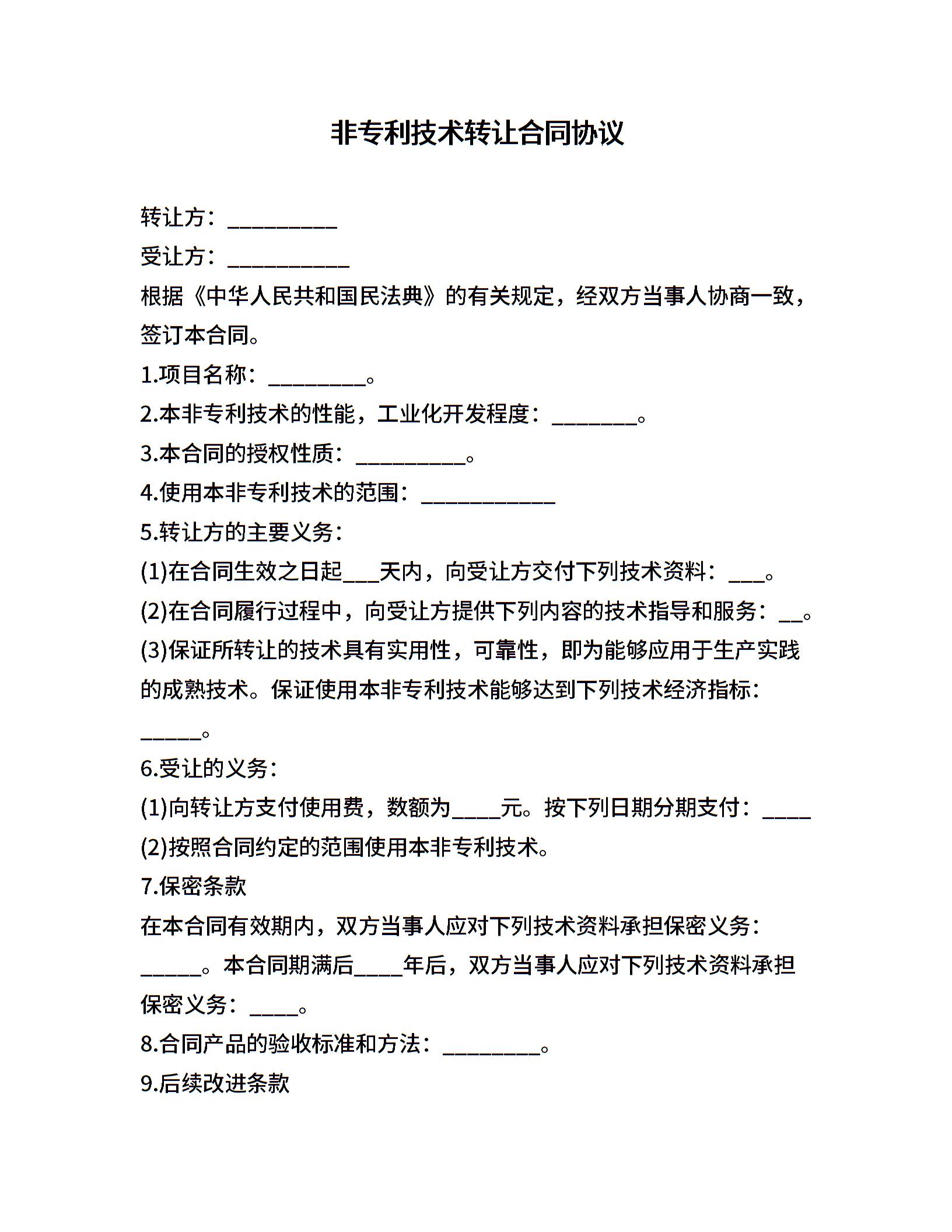 非专利技术转让合同协议