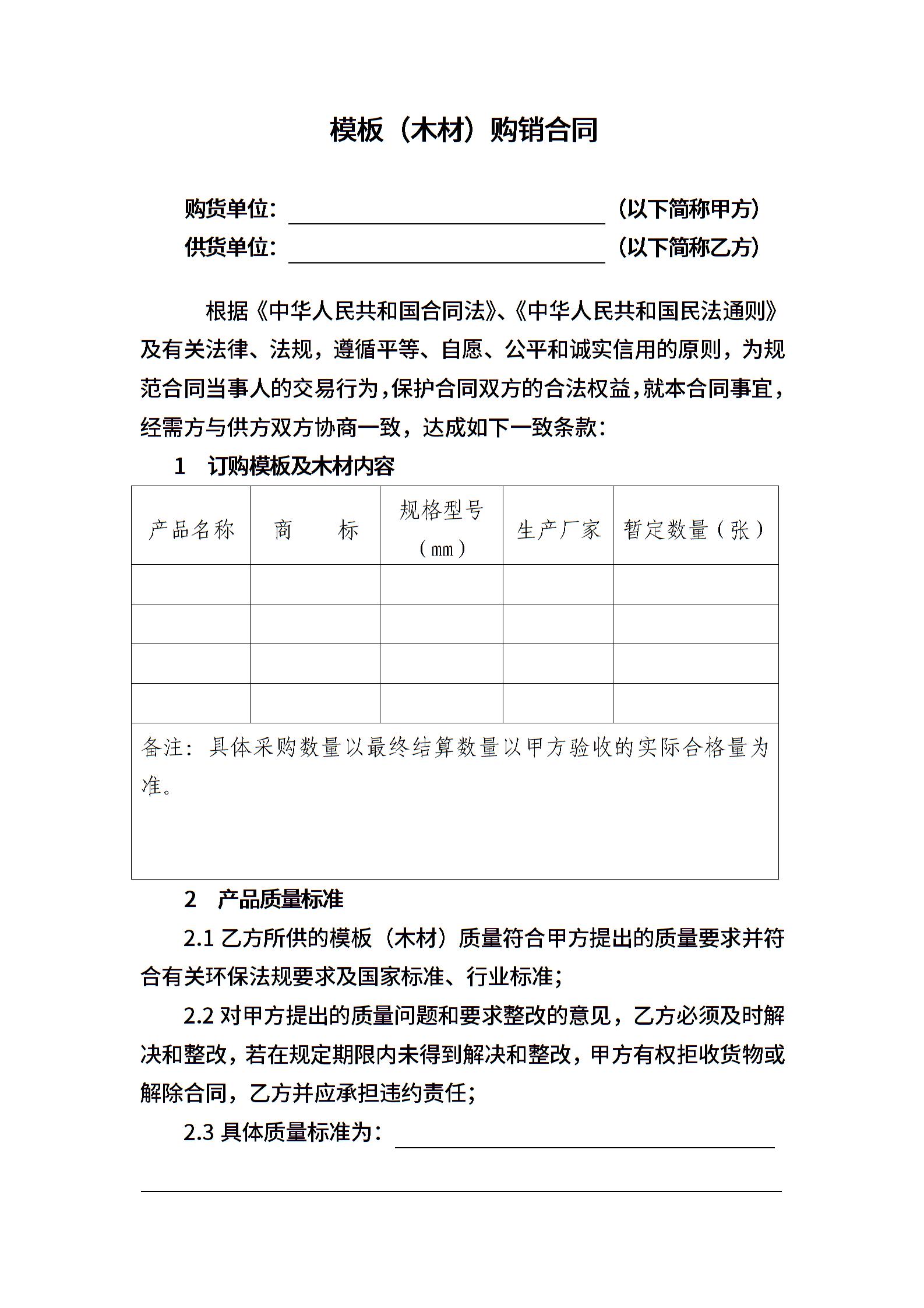 模板(木材)购销合同