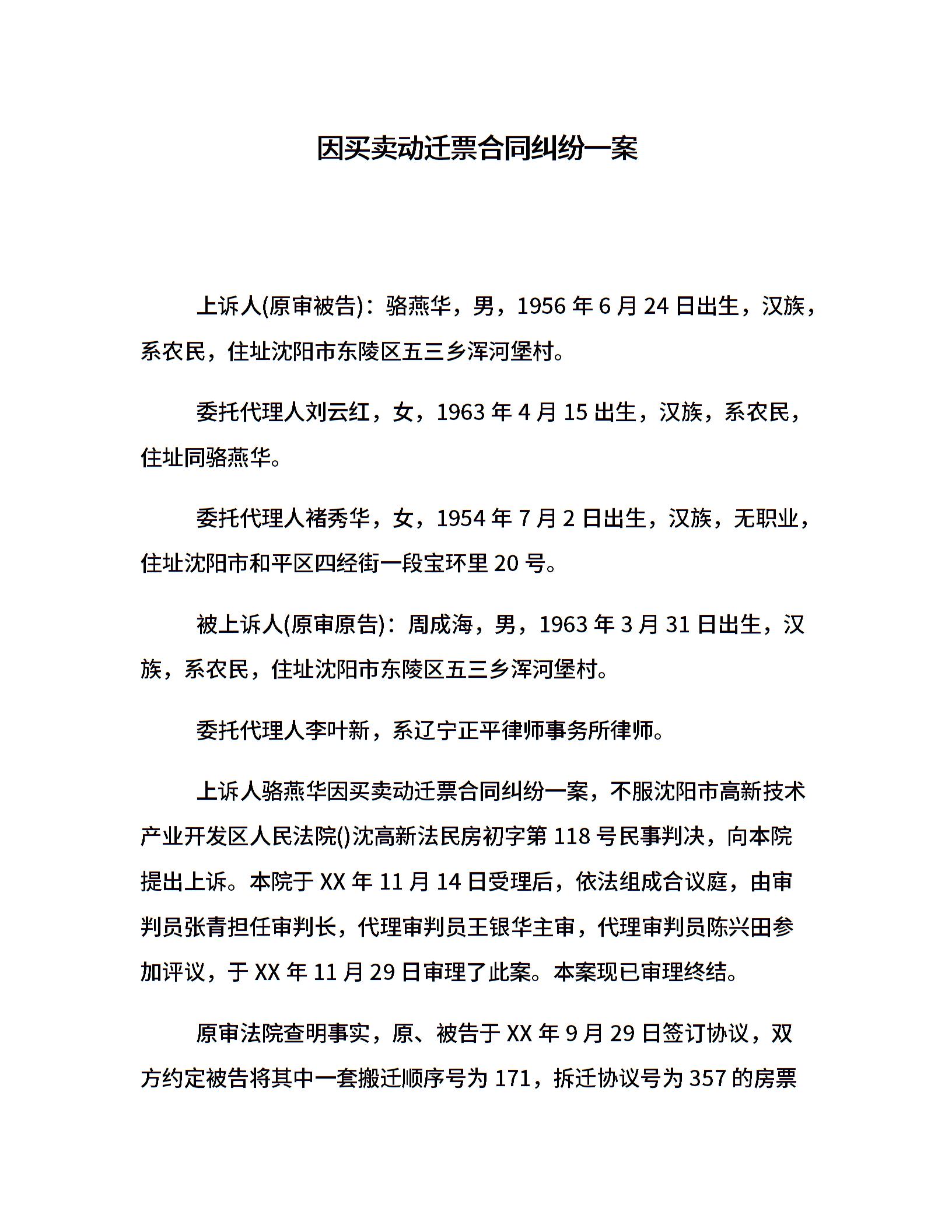 因买卖动迁票合同纠纷一案