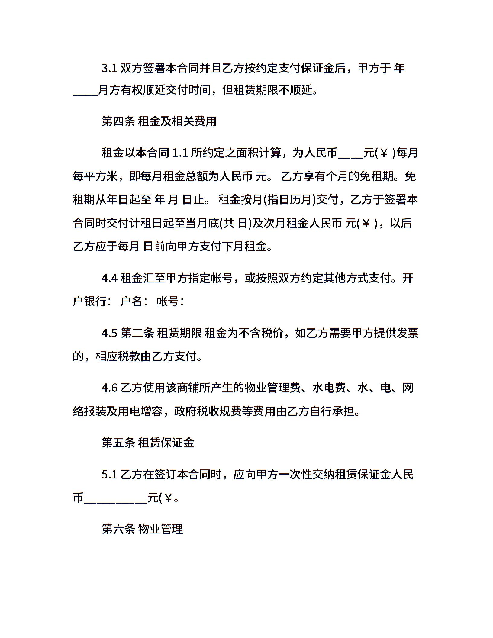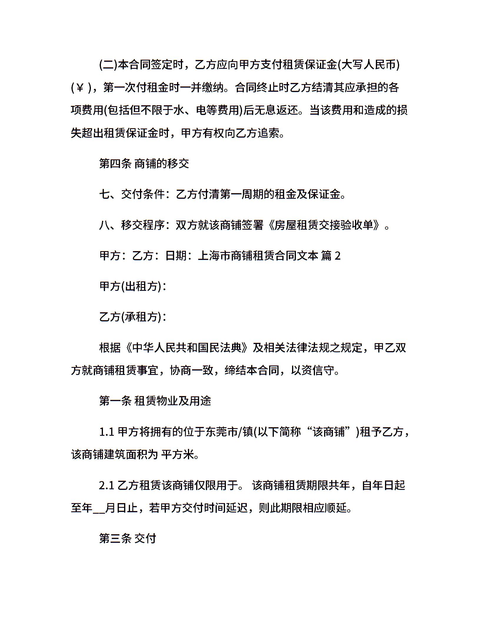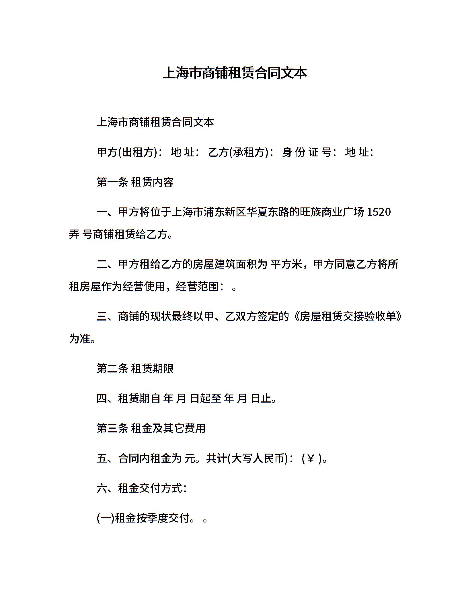 上海市商铺租赁合同文本