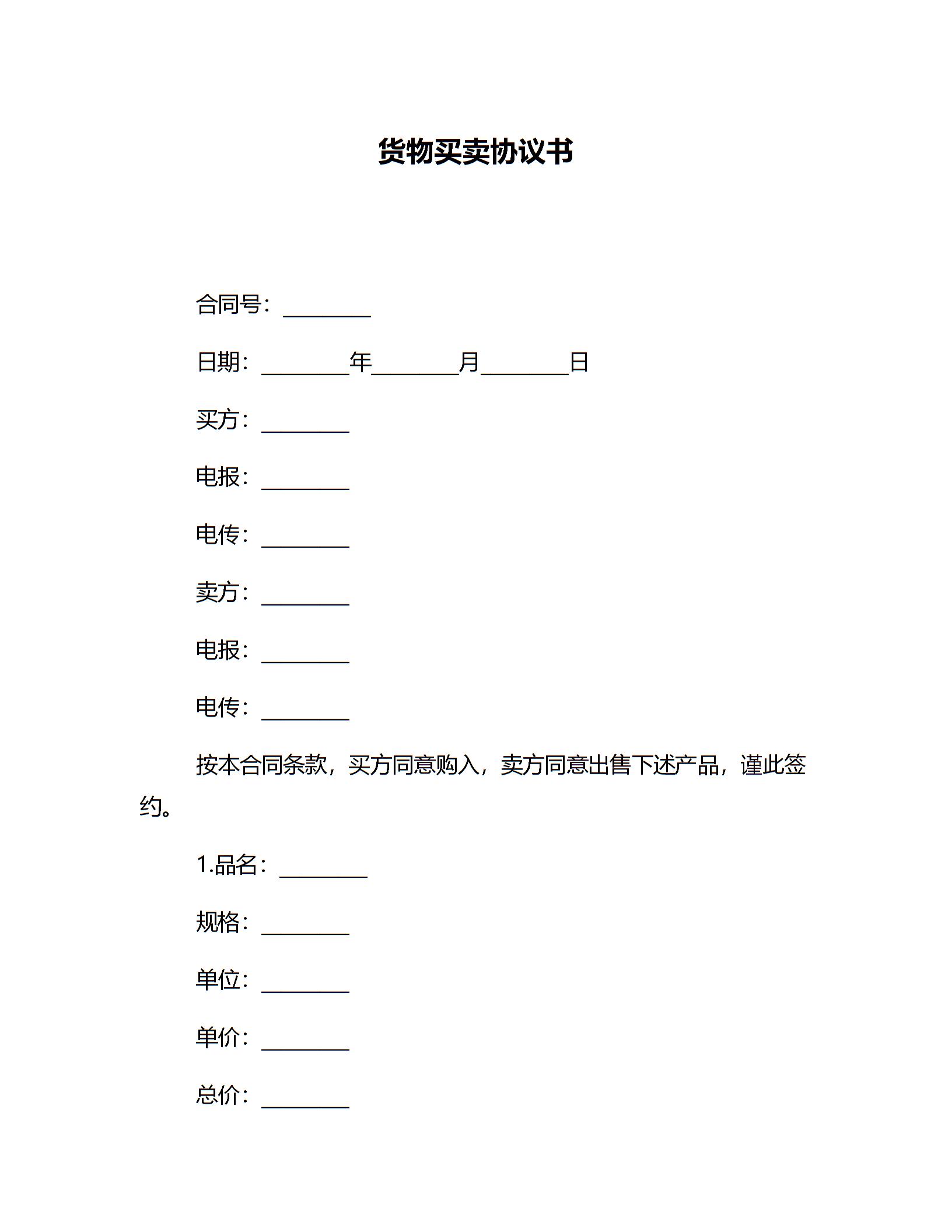 货物买卖协议书